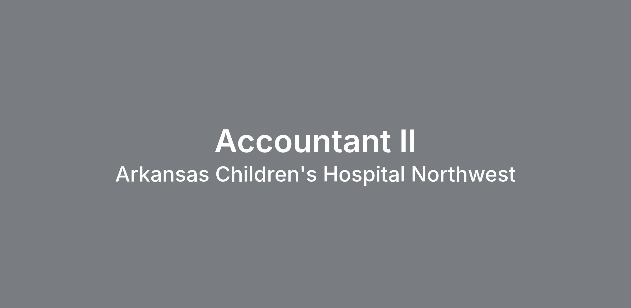 CC407080 AccountingThe Accountant II position will assist in maintaining financial records and ensuring that financial transactions are properly recorded. Ensures accuracy of entries to ledger accounts and reconciles accounts. Responsible for daily, monthly, and yearly closing duties as well as other special projects as assigned. May assist with the development, completion, and publishing of the annual budget.