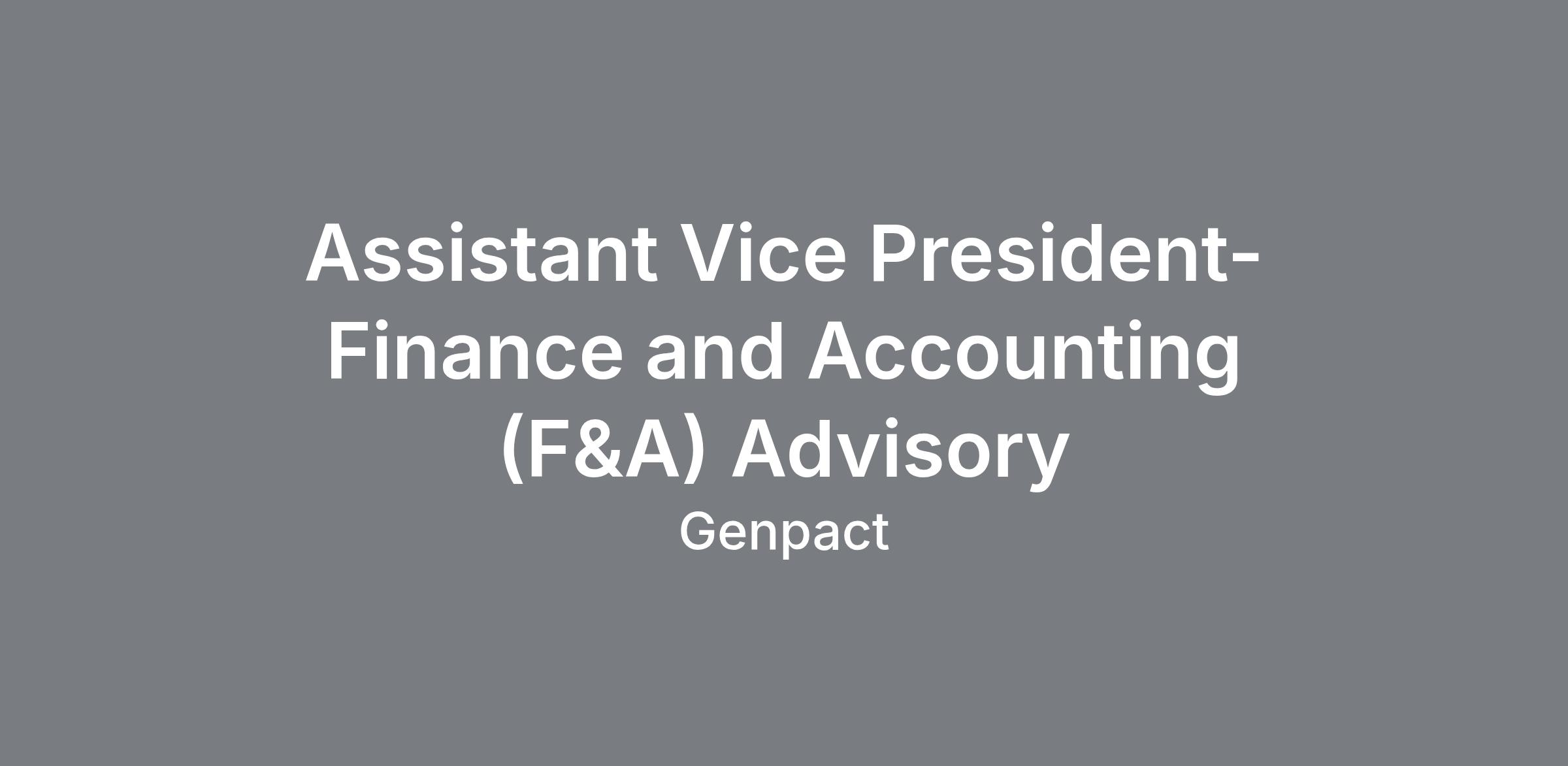 Inviting applications for the role of Assistant Vice President - Finance and Accounting (F&A) Advisory