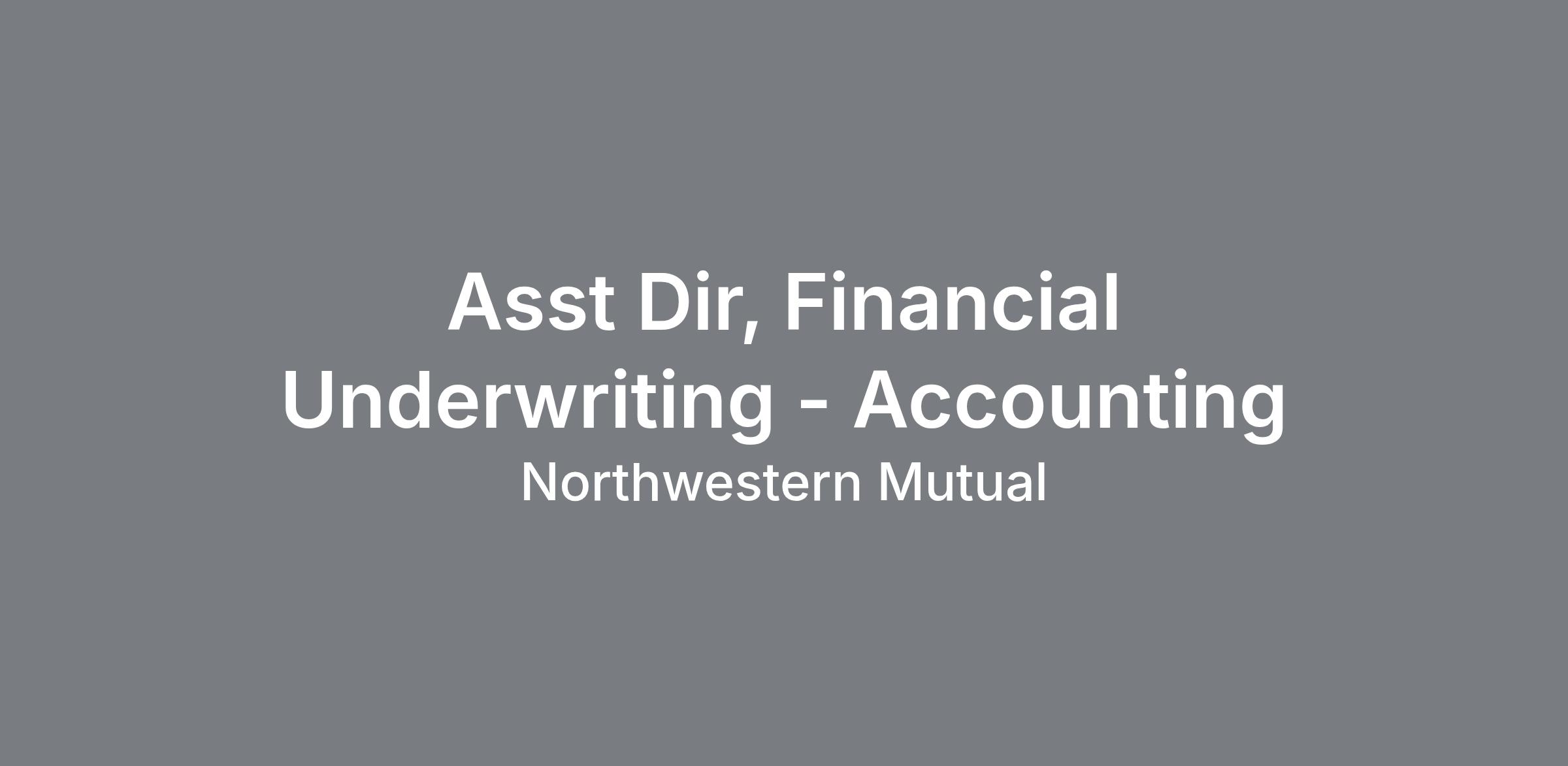 Summary: Responsible for setting and updating the company’s financial standards and requirements for life and disability insurance underwriting. Collaborates across teams to assure adherence to those standards and requirements. Provides financial underwriting expertise on case consultations. Supplies financial expertise for underwriter training, projects, and committees across the enterprise. Primary Duties & Responsibilities: Responsible for setting and updating the company’s financial standards and requirements for life and disability insurance underwriting. This requires researching, developing, writing, reviewing, and implementing new and revised standards and requirements. Provides the highest level of technical expertise to analyze and resolve complex financial case consultations. As needed, communicates directly with NM financial representatives, clients, outside CPAs, and attorneys on complex cases. Provides financial expertise to all levels of leadership across the enterprise. Provides leadership and technical expertise to committees and projects across the enterprise. Provides technical expertise for underwriter training and development. Delivers training on complex financial topics. Resolves complex case escalations by providing technical and standard-setter expertise. Maintains the highest level of current accounting, business valuation and estate planning knowledge through continuing education and the review of professional publications. Qualifications: A bachelor’s degree in accounting CPA designation preferred Minimum of 7 years of experience Superior analytical and decision-making skills that balance flexibility, critical thinking and judgement. High degree of personal initiative and the ability to work independently and deliver timely results in a fast-paced production environment. Ability to train, develop and mentor underwriters. IN-POST LI-POST Compensation Range: Pay Range - Start: $94,640.00 Pay Range - End: $175,760.00 Geographic Specific Pay Structure: Structure 110: $104,090.00 USD - $193,310.00 USD Structure 115: $108,850.00 USD - $202,150.00 USD We believe in fairness and transparency. It’s why we share the salary range for most of our roles. However, final salaries are based on a number of factors, including the skills and experience of the candidate; the current market; location of the candidate; and other factors uncovered in the hiring process. The standard pay structure is listed but if you’re living in California, New York City or other eligible location, geographic specific pay structures, compensation and benefits could be applicable, click here to learn more. Grow your career with a best-in-class company that puts our clients' interests at the center of all we do. Get started now! Northwestern Mutual is an equal opportunity employer who welcomes and encourages diversity in the workforce. We are committed to creating and maintaining an environment in which each employee can contribute creative ideas, seek challenges, assume leadership and continue to focus on meeting and exceeding business and personal objectives. Skills Analytical Thinking (NM) - Advanced, Escalation Management (NM) - Expert, Customer Centricity (NM) - Advanced, Domain Expertise (NM) - Advanced, Insurance, Financial & Actuarial (NM) - Advanced (Inactive), Insurance Acumen (NM) - Advanced, Financial Case Consultation & Resolution (NM) - Expert, Attention to Detail (NM) - Advanced, Adaptive Communication (NM) - Advanced, Research Methods (NM) - Advanced, Decision Making (NM) - Expert, Underwriting Research (NM) - Advanced, Data Application (NM) - Advanced, Information Gathering (NM) - Expert, Stakeholder Relationship (NM) - Advanced, Learning Agility (NM) - Advanced (Inactive), Critical Analysis (NM) - Advanced (Inactive), Underwriting Practices (NM) - Advanced, Mortality, Morbidity, & Risk Analysis (NM) - Expert FIND YOUR FUTURE We’re excited about the potential people bring to Northwestern Mutual. You can grow your career here while enjoying first-class perks, benefits, and our commitment to a culture of belonging. Flexible work schedules Concierge service Comprehensive benefits Employee resource groups PandoLogic. Category:Insurance, Keywords:Underwriting Assistant, Location:Franklin, WI-53132