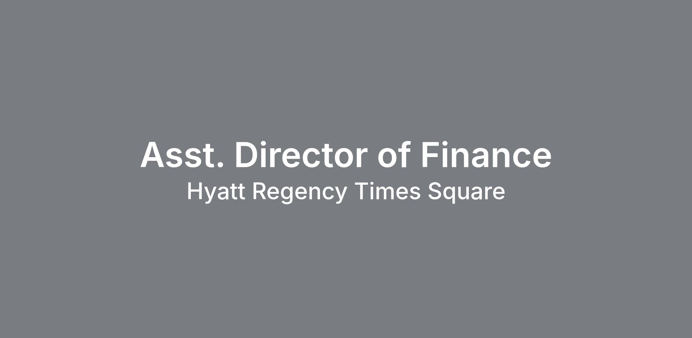 Compensation Type: Yearly Highgate Hotels: Highgate is a leading real estate investment and hospitality management company with over $15 billion of assets under management and a global portfolio of more than 400 hotels spanning North America, Europe, the Caribbean, and Latin America. With a 30-year track record as an innovator in the hospitality industry, this forward-thinking company provides expert guidance through all stages of the property cycle, from planning and development through recapitalization or disposition. Highgate continues to demonstrate success in developing a diverse portfolio of bespoke lifestyle hotel brands, legacy brands, and independent hotels and resorts, featuring contemporary programming and digital acumen. The company utilizes industry-leading revenue management tools that efficiently identify and predict evolving market dynamics to drive outperformance and maximize asset value. With an executive team of seasoned hospitality leaders and corporate offices worldwide, Highgate is a trusted partner for top ownership groups and major hotel brands. www.highgate.com Location: Hyatt Regency Times Square is perfectly located in the heart of Times Square excitement, situated directly on Broadway between 48th and 49th Streets. This iconic, ultra-modern, full-service hotel is surrounded by Broadway theaters and close to world-famous shopping and sightseeing. The hotel has 795 modern, newly renovated guestrooms. Overview: The Assistant Director of Finance is responsible for providing consistent leadership in the financial area of the hotel by supplying the accounting staff with guidance and training. He/she is also responsible for focusing on the profitability of the business, maintaining accurate and timely financial reporting, ensuring acceptable levels on internal control, ensuring compliance with all federal, state, and local regulations, and safeguarding owners/investors assets. Responsibilities: Assist Director of Finance in timely preparation of monthly financial statements for the property Prepare, monitor, and accurately record hotel revenues daily by preparation of the Income Journal. Identify all variances to budget and last year. Monitoring and control of hotel operations, cash flow and operating forecasts for the property Under guidance of Director of Finance maintain timely interaction with Department Heads to assure that property operations are on track and under control at all times Preparation of monthly bank reconciliations and general ledger account reconciliations for the property Supervision of accounting department staff Compliance with Highgate Accounting Policies and Procedures and internal controls for our finance and accounting operations Effectively manage and communicate related issues related to management of receivables, payables, daily cash balances, and timely deposits of all funds. Monitor hotel revenues and expenses and ensure the accurate recording in accordance with Highgate Hotel’s established guidelines. Investigate and critique variances to budget or to prior year and offer practical improvement methodologies to management. Analyze financial data and operations in order to assist Director of Finance and advise Department Heads in maintaining the hotels’ financial objectives. With supervision of Director of Finance hire, train, supervise and develop staff, including coaching, counseling and discipline. Preparation of any special reports, statements, etc., as requested. Other special projects and responsibilities as assigned. Qualifications: Bachelors Degree, preferably in Accounting. Strong PC skills including Excel, Word and financial accounting systems. Strong organizational, analytical, verbal and written communication skills. Long hours and sometimes required. Hospitality related financial management and accounting experience desirable.