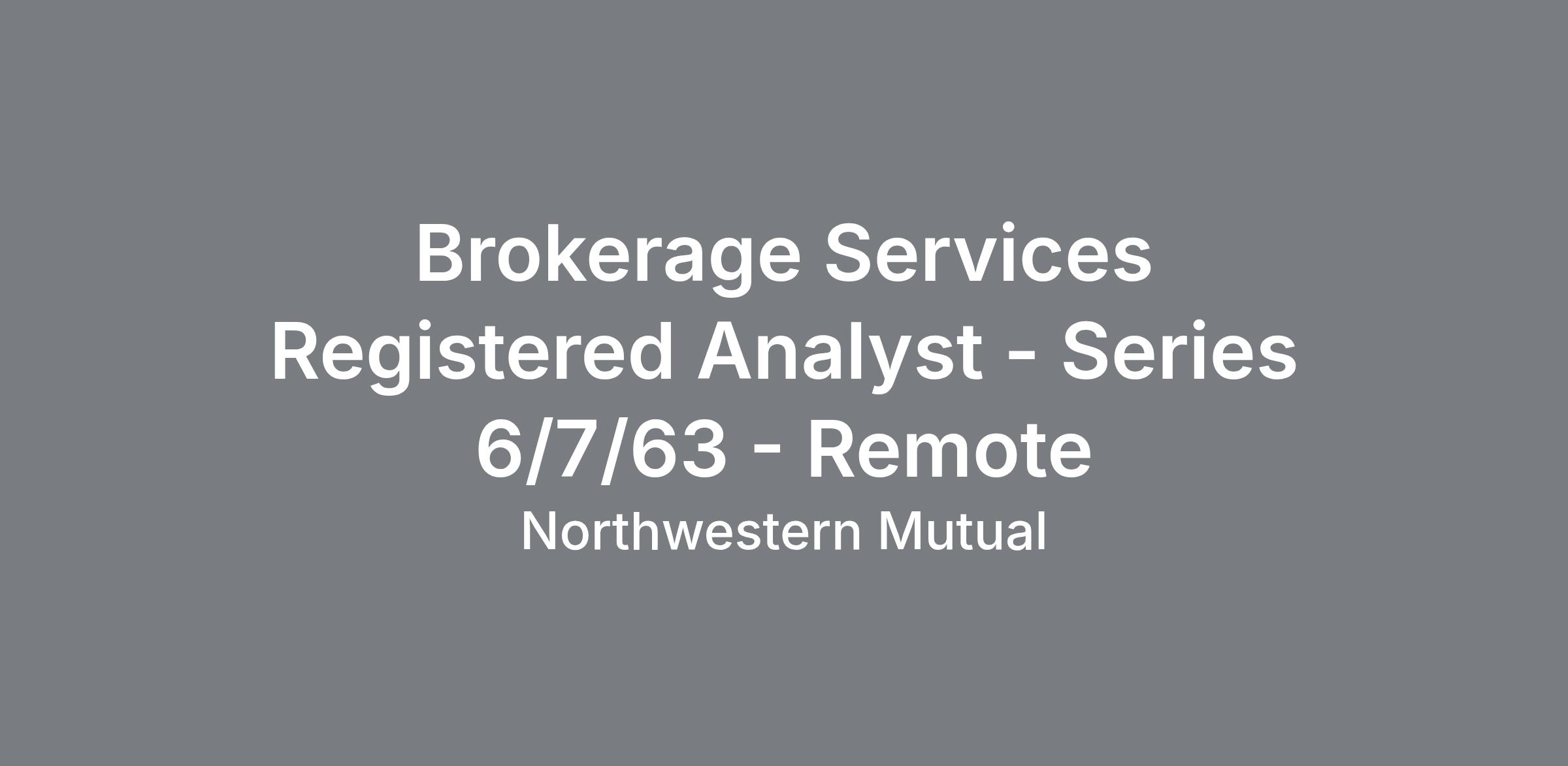The Investment Client Services Analyst (Series 7/63) is a licensed, client-facing role responsible for supporting clients and registered financial representatives with investment account questions, performance inquiries, and securities transactions. Success in this role requires strong investment product knowledge, the ability to de-escalate complex situations, and ownership of issues through resolution. The analyst also contributes to continuous improvement efforts, embraces new technology, and educates clients and field partners on digital/self-service capabilities—helping strengthen relationships and support client retention. Primary Duties & Responsibilities: Provide consultative service to clients and advisors on a variety of investment concepts Act as a point of expertise on multiple areas: mutual fund trading, brokerage account servicing, cost basis, and tax reporting Participate in opportunities to apply industry knowledge while gaining exposure to complex problems and building upon critical thinking skills Collaborate regularly with department leads and NM Wealth business partners to drive product enhancements Work in a dynamic setting to continuously learn new concepts and help others navigate change in the industry Serve as a primary point of contact for NM Investment home office assigned clients, addressing inquiries regarding investment accounts and products. Analyze, input, and review investment transactions, including trade executions, transfers, and account maintenance, while ensuring accuracy and compliance. Stay up-to-date on industry trends, investment products, and regulatory requirements to provide knowledgeable support to clients and internal stakeholders. Qualifications FINRA Series 6 or 7 and 63-equivalent licenses (65 or 66) FINRA Series 6 or 7 and 63-equivalent licenses (65 or 66) Associates degree in business or related field or equivalent combination of education and experience Associates degree in business or related field or equivalent combination of education and experience Minimum of 3 years related financial services experience with advanced customer service, written, and verbal communication skills Minimum of 3 years related financial services experience with advanced customer service, written, and verbal communication skills An intermediate understanding of tax implications related to investments An intermediate understanding of tax implications related to investments A strong desire to continuously learn and improve A strong desire to continuously learn and improve Strong problem-solving and scenario-evaluation skills with an ability to provide solutions Strong problem-solving and scenario-evaluation skills with an ability to provide solutions This position has been classified as a Registered Representative under NMIS guidelines and requires fingerprinting.Series 63 - FINRA, Series 7 - FINRA, SIE - FINRA Compensation Range: Pay Range - Start: $23.11 Pay Range - End: $34.66 Geographic Specific Pay Structure: Structure 110: Structure 115: We believe in fairness and transparency. It’s why we share the salary range for most of our roles. However, final salaries are based on a number of factors, including the skills and experience of the candidate; the current market; location of the candidate; and other factors uncovered in the hiring process. The standard pay structure is listed but if you’re living in California, New York City or other eligible location, geographic specific pay structures, compensation and benefits could be applicable, click here to learn more. Grow your career with a best-in-class company that puts our clients' interests at the center of all we do. Get started now! Northwestern Mutual is an equal opportunity employer who welcomes and encourages diversity in the workforce. We are committed to creating and maintaining an environment in which each employee can contribute creative ideas, seek challenges, assume leadership and continue to focus on meeting and exceeding business and personal objectives. Skills Teamwork (NM) - Advanced, Compliance (NM) - Advanced, Analytical Thinking (NM) - Advanced, Escalation Management (NM) - Advanced, Change Adaptability (NM) - Advanced, Financial Services Industry Acumen (NM) - Advanced, Root Cause Analysis & Decision Quality (NM) - Advanced, Investment Products (NM) - Advanced, Prioritization (NM) - Advanced, Policy & Procedure (NM) - Advanced, Customer Support (NM) - Advanced, Tax Awareness (NM) - Advanced, Client Advocacy (NM) - Advanced, Field Relations (NM) - Advanced, Attention to Detail (NM) - Advanced, Quality Acumen (NM) - Advanced, Adaptive Communication (NM) - Advanced, Data Security (NM) - Advanced, Insurance Products (NM) - Advanced, Policy Inquiries & Complaints Management (NM) - Advanced, Customer Service Mindset (NM) - Advanced, Case Management (NM) - Advanced FIND YOUR FUTURE We’re excited about the potential people bring to Northwestern Mutual. You can grow your career here while enjoying first-class perks, benefits, and our commitment to a culture of belonging. Flexible work schedules Concierge service Comprehensive benefits Employee resource groups PandoLogic. Category:Finance, Keywords:Financial Analyst, Location:Franklin, WI-53132