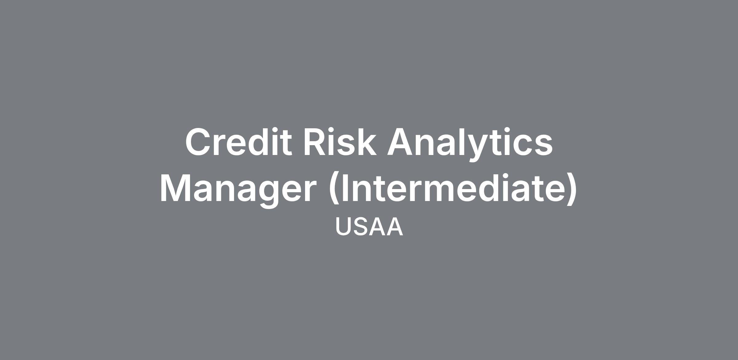 Why USAA? At USAA, our mission is to empower our members to achieve financial security through highly competitive products, exceptional service and trusted advice. We seek to be the 1 choice for the military community and their families. Embrace a fulfilling career at USAA, where our core values – honesty, integrity, loyalty and service – define how we treat each other and our members. Be part of what truly makes us special and impactful. The Opportunity As a dedicated Credit Risk Analytics Manager, you will conduct quantitative credit/behavioral/financial analytics or predictive modeling to assess risks and opportunities and provides recommendations for bank consumer portfolios. We offer a flexible work environment that requires an individual to be in the office 4 days per week. This position can be based in one of the following locations: San Antonio, TX or Plano, TX. Relocation assistance is not available for this position. What you'll do: Apply analytical skills to assess risks and opportunities for a bank consumer portfolio and translates results into recommendations. Effectively develop analytical concepts in support of key stakeholders to deliver on bank risk strategies. Conduct quantitative analysis utilizing extensive internal and external data sources. Develop qualitative analysis to support departmental decision making. Research credit, product, and/or risk proposals and utilize critical thinking skills to provide analysis ensuring strong portfolio performance outcomes. Build and/or maintain effective risk management frameworks which can identify, measure, or mitigate risk. Develop and maintain comprehensive risk reporting in support of management and committee oversight of existing and emerging risks. May develop and/or execute financial risk sensitivity analysis. May execute credit and/or financial modeling infrastructure. What you have: Bachelor’s degree: OR 4 years of related experience (in addition to the minimum years of experience required) may be substituted in lieu of degree. Minimum 2 years’ experience in an analytical field or focused on risk management execution, analytics or risk assessments; OR an advanced degree in a quantitative, scientific, engineering, business or technical field; OR an equivalent level of demonstrated competencies in leading risk management execution, analytics and risk assessments. Experience communicating analytical insights to various stakeholders. Ability to apply critical thinking skills with various data to problem solve effectively. Basic understanding of data, code, or reporting tools. What sets you apart: Technical Proficiency: Familiarity with SQL and programming languages such as Python, SAS, or R is essential. Intellectual Curiosity and Agility: Demonstrated intellectual curiosity, self-motivation, and learning agility are highly valued. The ideal candidate possesses a natural desire to explore, understand complex issues, and adapt to new challenges and information. Strong Communication Skills: Excellent verbal and written communication skills are paramount for conveying complex findings and insights clearly to diverse audiences, including non-technical stakeholders. Collaboration and the ability to explain data effectively are critical to success in this role. Compensation range: The salary range for this position is: $77,120.00 - $147,390.00 . USAA does not provide visa sponsorship for this role. Please do not apply for this role if at any time (now or in the future) you will need immigration support (i.e., H-1B, TN, STEM OPT Training Plans, etc.). Compensation: USAA has an effective process for assessing market data and establishing ranges to ensure we remain competitive. You are paid within the salary range based on your experience and market data of the position. The actual salary for this role may vary by location. Employees may be eligible for pay incentives based on overall corporate and individual performance and at the discretion of the USAA Board of Directors. The above description reflects the details considered necessary to describe the principal functions of the job and should not be construed as a detailed description of all the work requirements that may be performed in the job. Benefits: At USAA our employees enjoy best-in-class benefits to support their physical, financial, and emotional wellness. These benefits include comprehensive medical, dental and vision plans, 401(k), pension, life insurance, parental benefits, adoption assistance, paid time off program with paid holidays plus 16 paid volunteer hours, and various wellness programs. Additionally, our career path planning and continuing education assists employees with their professional goals. For more details on our outstanding benefits, visit our benefits page on USAAjobs.com. Applications for this position are accepted on an ongoing basis, this posting will remain open until the position is filled. Thus, interested candidates are encouraged to apply the same day they view this posting. USAA is an Equal Opportunity Employer. All qualified applicants will receive consideration for employment without regard to race, color, religion, sex, sexual orientation, gender identity, national origin, disability, or status as a protected veteran.