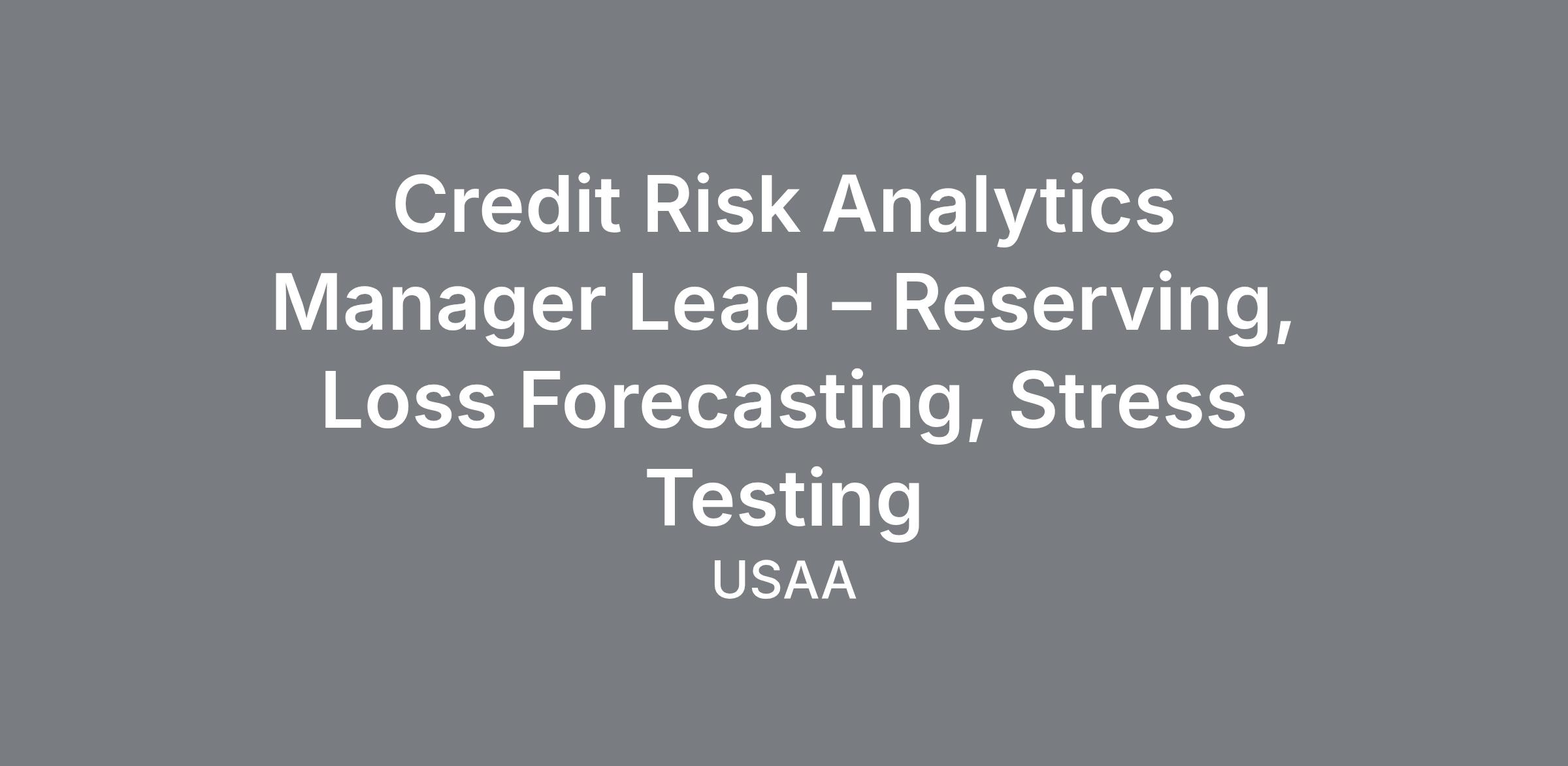 Credit Risk Analytics Manager Lead – Reserving, Loss Forecasting, Stress Testing