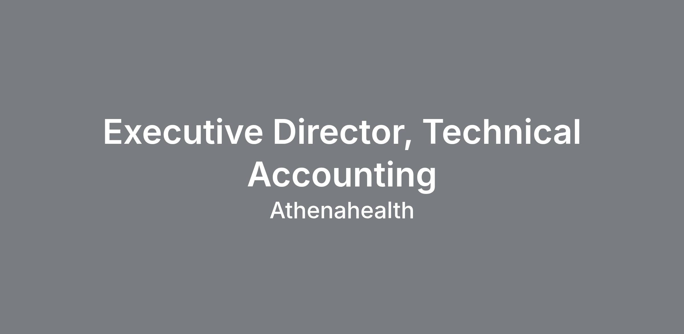 Join us as we work to create a thriving ecosystem that delivers accessible, high-quality, and sustainable healthcare for all. Executive Director, Technical Accounting US – Boston MA – Hybrid Position Summary The Executive Director, Technical Accounting is the enterprise leader responsible for interpreting, operationalizing, and governing complex accounting and tax matters across athenahealth. The Executive Director ensures the organization maintains the highest standards of financial integrity, compliance, and reporting excellence. About the Team Reporting to the Chief Accounting Officer, this leader partners across Finance, Legal, Product and Executive Leadership to support strategic decision‑making and scalable growth. The Technical Accounting team is part of athenahealth’s broader Controllership organization. This role oversees three critical functions: Technical Accounting, Revenue Accounting, and Tax and manages a team of approximately 30 people. These teams partner closely with IT, FP&A, Corporate Development, Legal, Procurement and Product to evaluate new business models, commercial agreements, and strategic initiatives. We support the systems, processes and controls that ensure accurate financial results and audit‑ready documentation. Essential Job Responsibilities Serve as athenahealth’s internal expert on U.S. GAAP Provide oversight and governance for athenahealth’s tax provision Serve as a key point of contact for private equity stakeholders, providing clear updates on accounting matters, financial reporting and key operational insights. Lead the evaluation, documentation and communication of accounting conclusions for complex, non‑routine and strategic transactions. Develop, maintain and govern enterprise‑wide accounting policies and ensure consistent application across the organization. Partner with senior leadership to assess accounting implications of new products, pricing models and commercial arrangements. Lead interactions with external auditors and ensure audit‑ready support for all technical areas. Build, mentor and lead a high‑performing technical accounting organization. Additional Job Responsibilities Support M&A due diligence, integration and post‑acquisition accounting. Participate in cross‑functional initiatives to improve financial systems, processes and internal controls. Provide training and education to Finance and business partners on emerging accounting standards and policy updates. Contribute to transformation initiatives that enhance reporting quality, operational efficiency and scalability. Represent the Controllership organization in cross‑departmental working groups and strategic projects. Expected Education & Experience CPA required. 10 years of progressive technical accounting experience, including public accounting experience. Deep expertise in U.S. GAAP required. Demonstrated ability to lead complex accounting assessments and communicate conclusions to executive stakeholders. Experience managing and developing high‑performing hybrid/remote teams across revenue, tax and/or technical accounting functions. Strong cross‑functional collaboration skills and ability to influence without direct authority. Expected Compensation $182,000 - $310,000 The base salary range shown reflects the full range for this role from minimum to maximum. At athenahealth, base pay depends on multiple factors, including job-related experience, relevant knowledge and skills, how your qualifications compare to others in similar roles, and geographical market rates. Base pay is only one part of our competitive Total Rewards package - depending on role eligibility, we offer both short and long-term incentives by way of an annual discretionary bonus plan, variable compensation plan, and equity plans. About athenahealth Our vision: In an industry that becomes more complex by the day, we stand for simplicity. We offer IT solutions and expert services that eliminate the daily hurdles preventing healthcare providers from focusing entirely on their patients — powered by our vision to create a thriving ecosystem that delivers accessible, high-quality, and sustainable healthcare for all. Our company culture: Our talented employees — or athenistas, as we call ourselves — spark the innovation and passion needed to accomplish our vision. We are a diverse group of dreamers and do-ers with unique knowledge, expertise, backgrounds, and perspectives. We unite as mission-driven problem-solvers with a deep desire to achieve our vision and make our time here count. Our award-winning culture is built around shared values of inclusiveness, accountability, and support. Our DEI commitment: Our vision of accessible, high-quality, and sustainable healthcare for all requires addressing the inequities that stand in the way. That's one reason we prioritize diversity, equity, and inclusion in every aspect of our business, from attracting and sustaining a diverse workforce to maintaining an inclusive environment for athenistas, our partners, customers and the communities where we work and serve. What we can do for you: Along with health and financial benefits, athenistas enjoy perks specific to each location, including commuter support, employee assistance programs, tuition assistance, employee resource groups, and collaborative workspaces — some offices even welcome dogs. We also encourage a better work-life balance for athenistas with our flexibility. While we know in-office collaboration is critical to our vision, we recognize that not all work needs to be done within an office environment, full-time. With consistent communication and digital collaboration tools, athenahealth enables employees to find a balance that feels fulfilling and productive for each individual situation. In addition to our traditional benefits and perks, we sponsor events throughout the year, including book clubs, external speakers, and hackathons. We provide athenistas with a company culture
