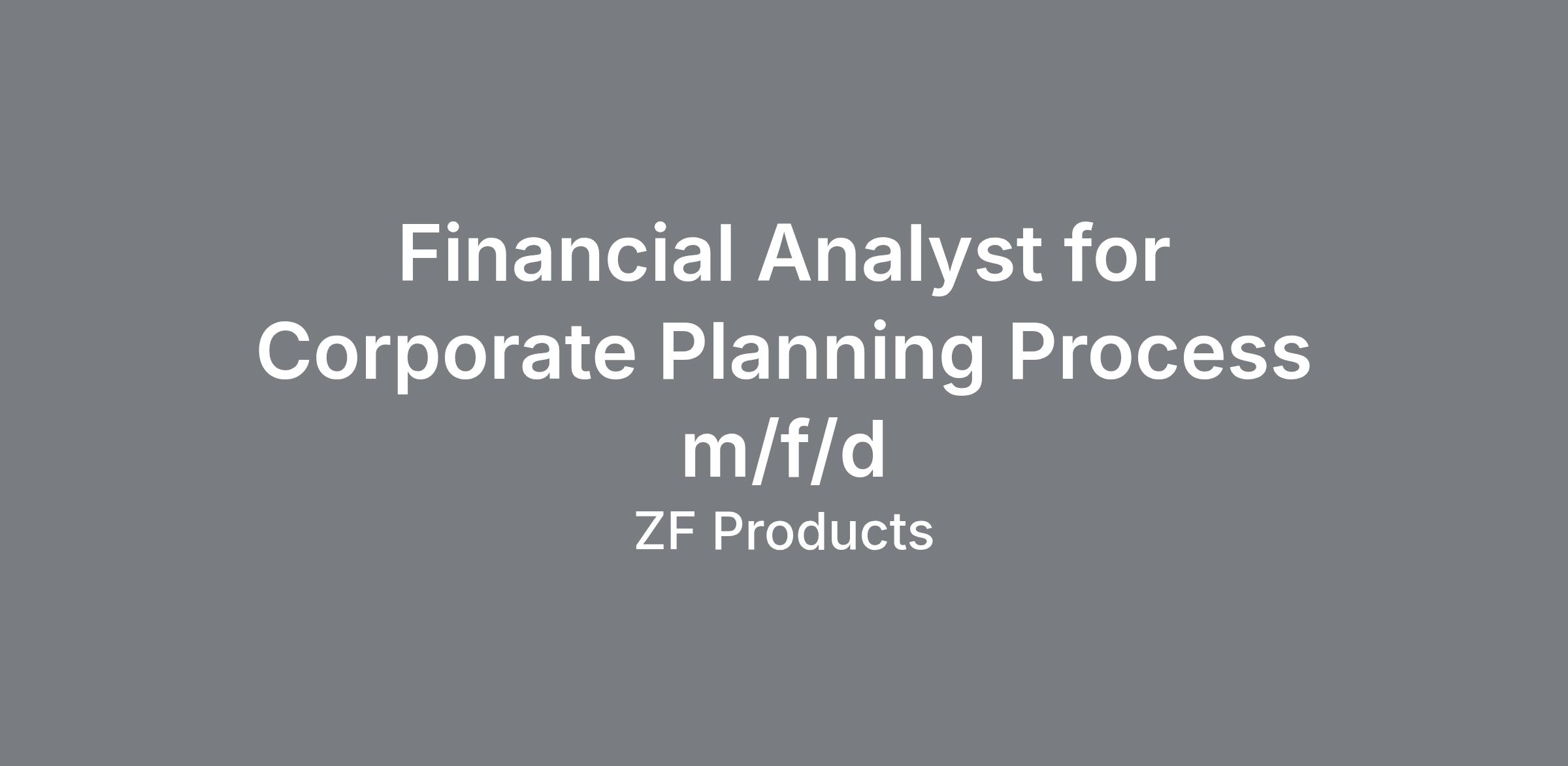 Be part of our ZF team as Financial Analyst for Corporate Planning Process m/f/d and apply now!