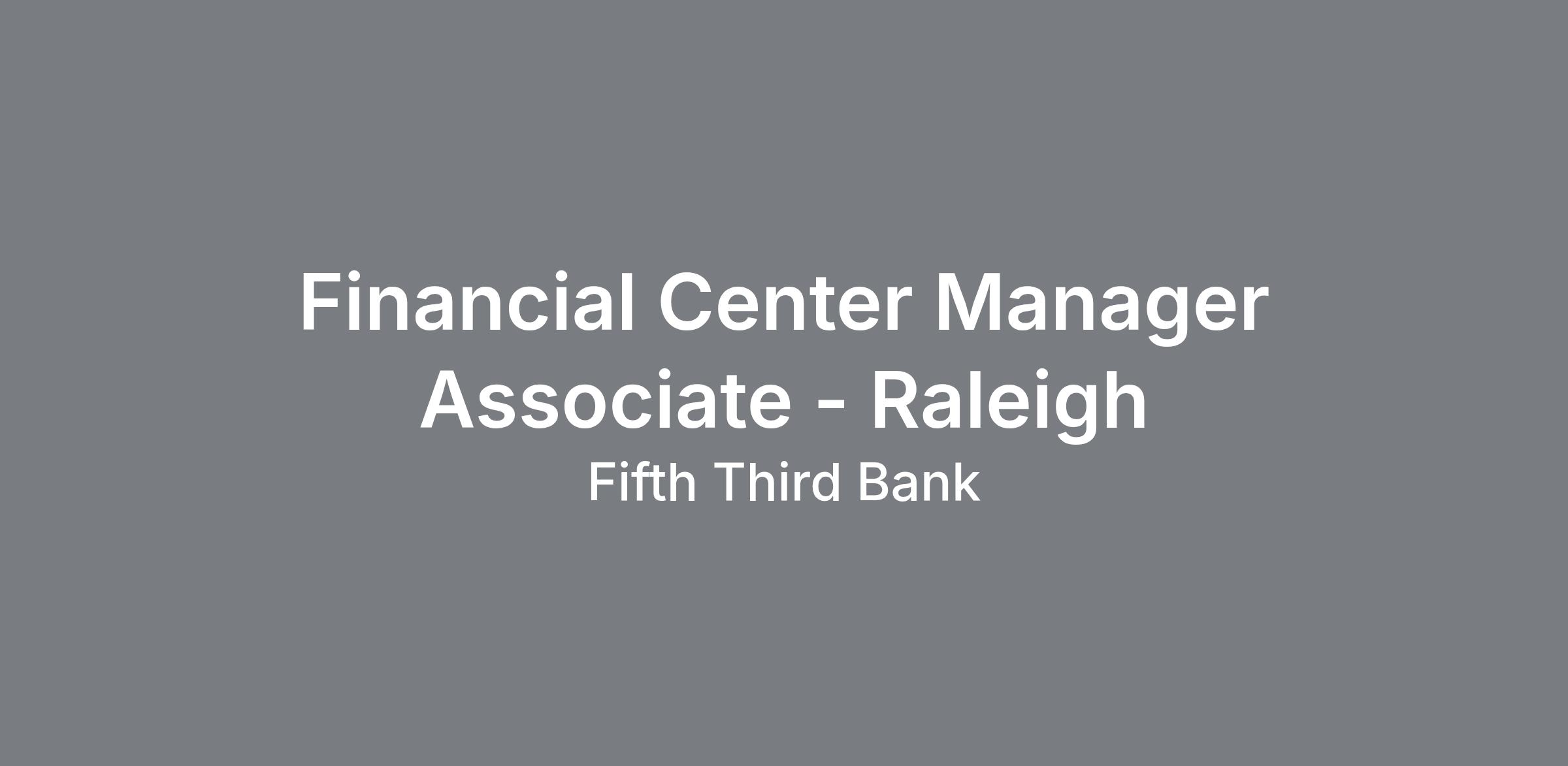 Financial Center Manager Associate - RaleighAt Fifth Third, we understand the importance of recognizing our employees for the role they play in improving the lives of our customers, communities and each other. Our Total Rewards include comprehensive benefits and differentiated compensation offerings to give each employee the opportunity to be their best every day.