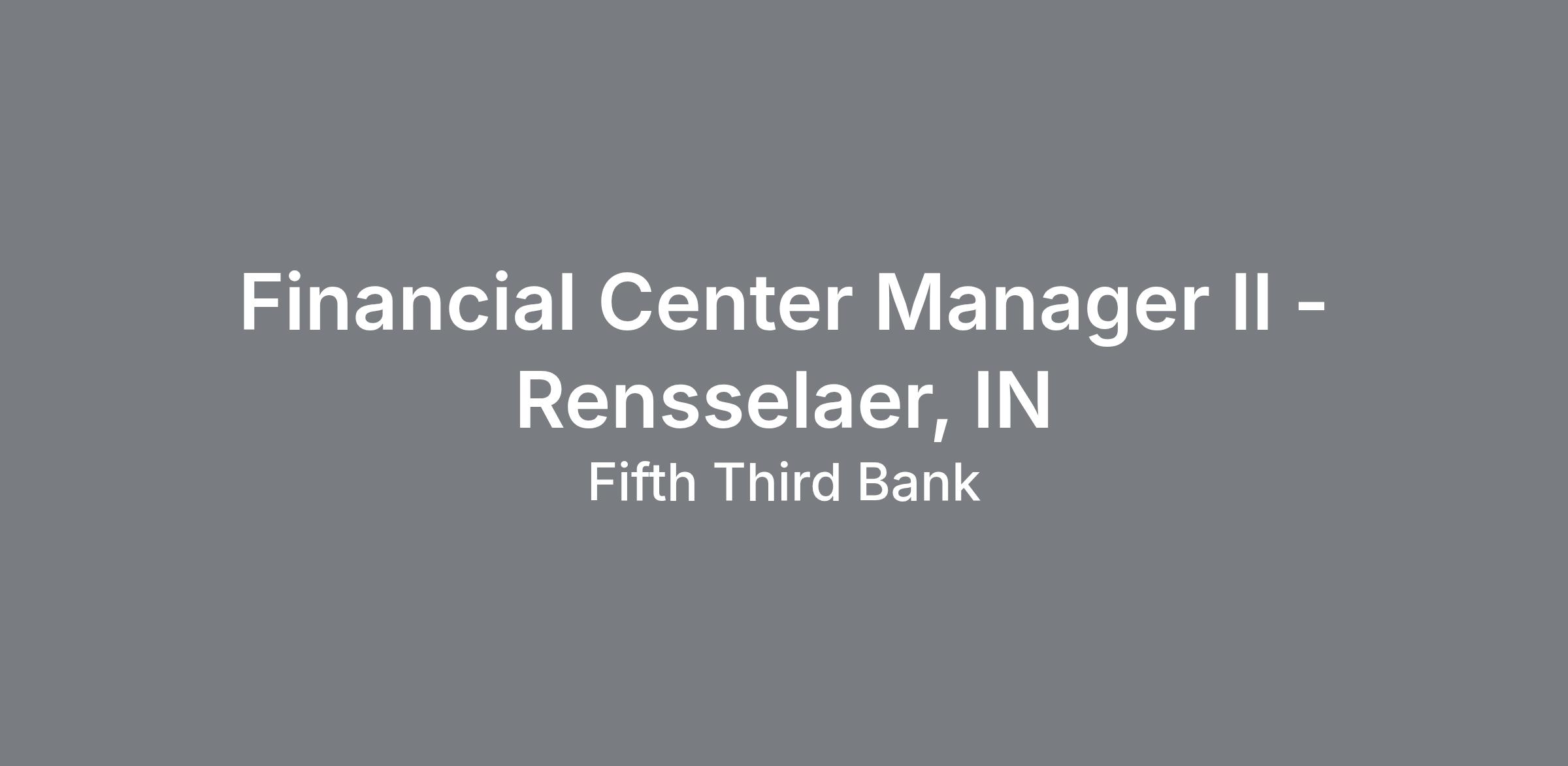 LOCATION -- Rensselaer, Indiana 47978Attention search firms and staffing agencies: do not submit unsolicited resumes for this posting. Fifth Third does not accept resumes from any agency that does not have an active agreement with Fifth Third. Any unsolicited resumes – no matter how they are submitted – will be considered the property of Fifth Third and Fifth Third will not be responsible for any associated fee.