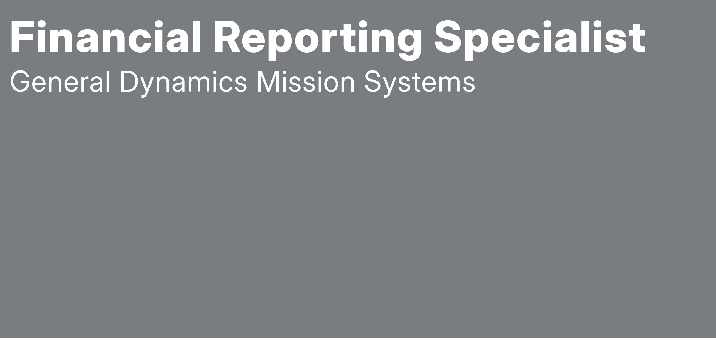 General Dynamics Mission Systems (GDMS) is seeking a Financial Reporting Specialist (Sr Finance Spec) to be part of its Financial Reporting team in our Chantilly, Virginia office. The Financial Reporting team reports to the GDMS Controller and seeks to be a strategic business partner within the organization. Financial Reporting plays a critical role at GDMS as one of the primary liaisons with the General Dynamics Corporate office. The position provides a unique opportunity for interaction with the Finance leadership team as well as the other functions across the GDMS business. The Finance Specialist, Financial Reporting will be exposed to various aspects of the business and will influence decisions that impact the success of GDMS.
