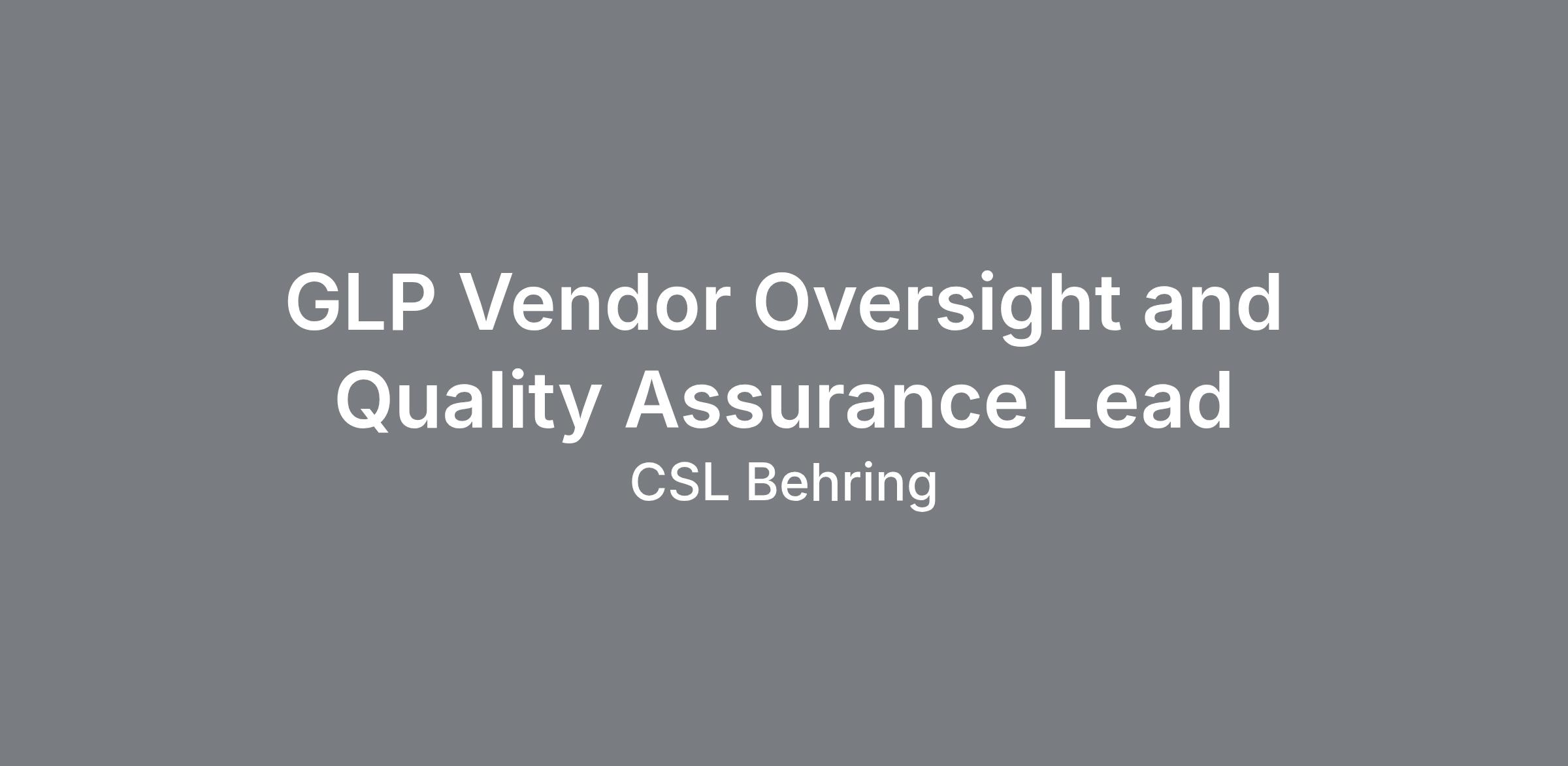 GLP Vendor Oversight and Quality Assurance Lead