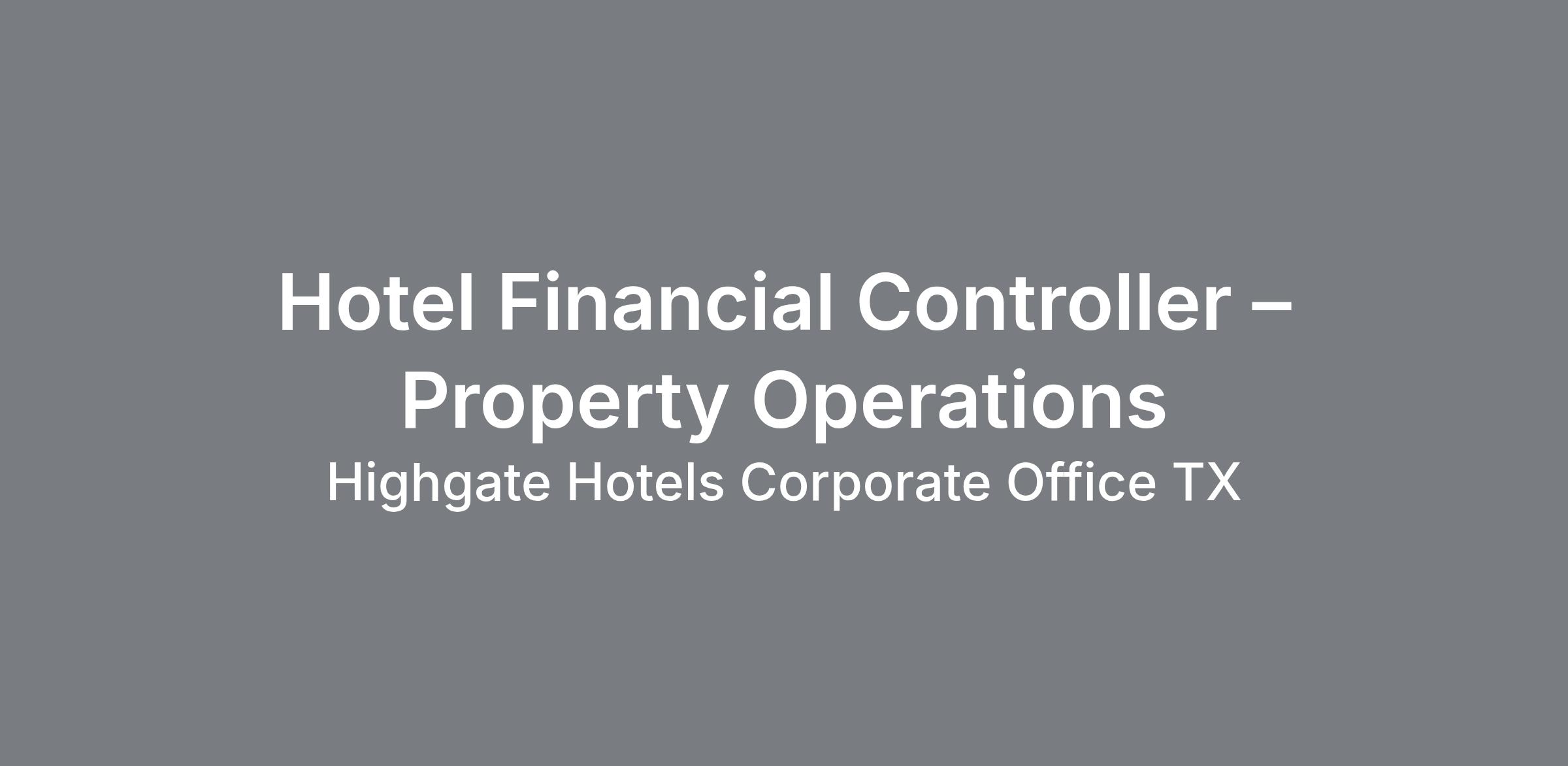 Hotel Financial Controller – Property Operations