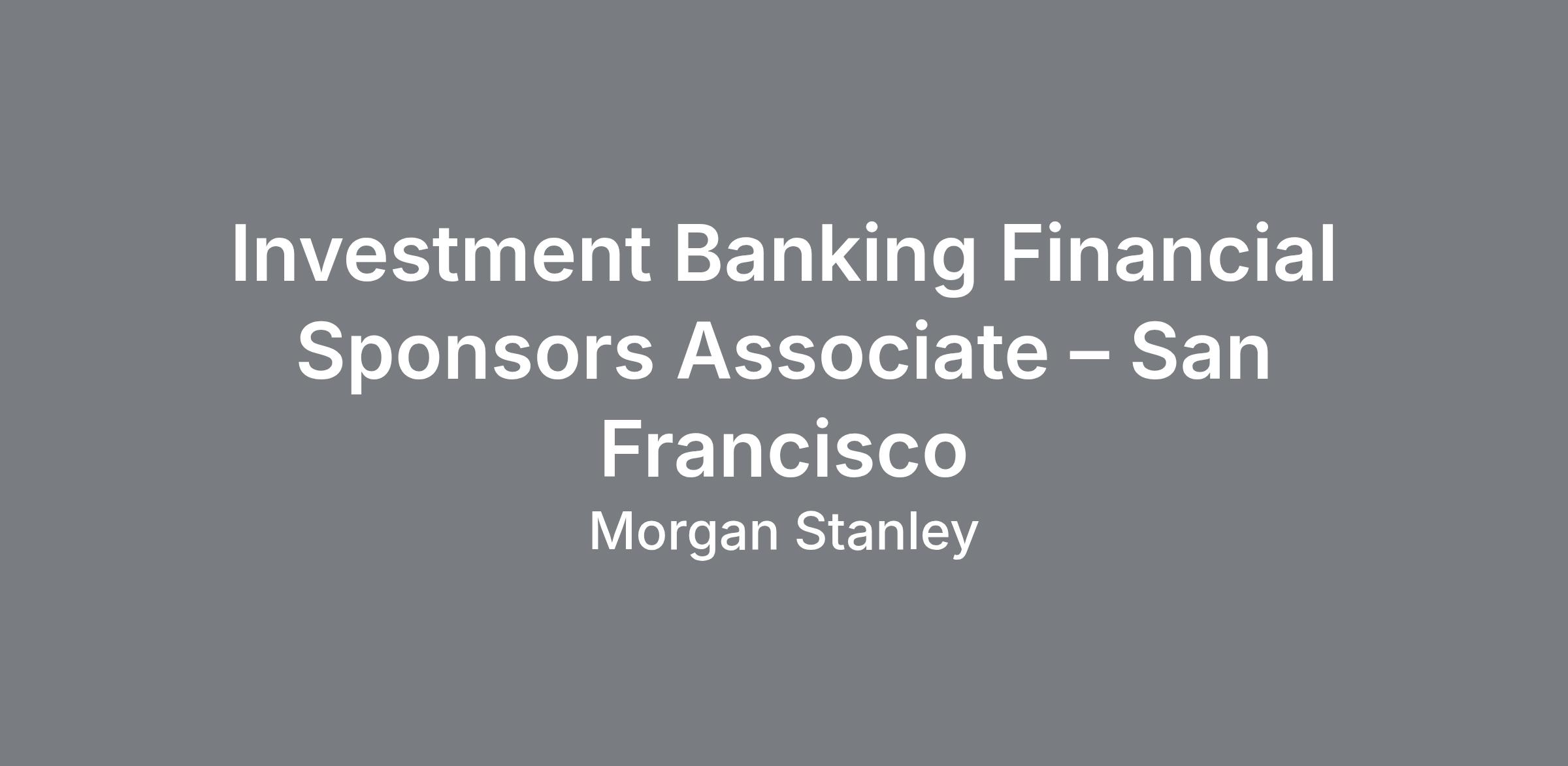Our San Francisco office is looking for an Investment Banking Associate to join the Financial Sponsors Group. Our Financial Sponsors Group advises private equity firms, hedge funds, sovereign wealth funds, and pension funds on capital-raising, investment, and exit strategies for companies. Responsibilities include financial analysis, deal execution (M&A, debt, equity), drafting pitch books and client materials, managing junior analysts, and developing client relationships.