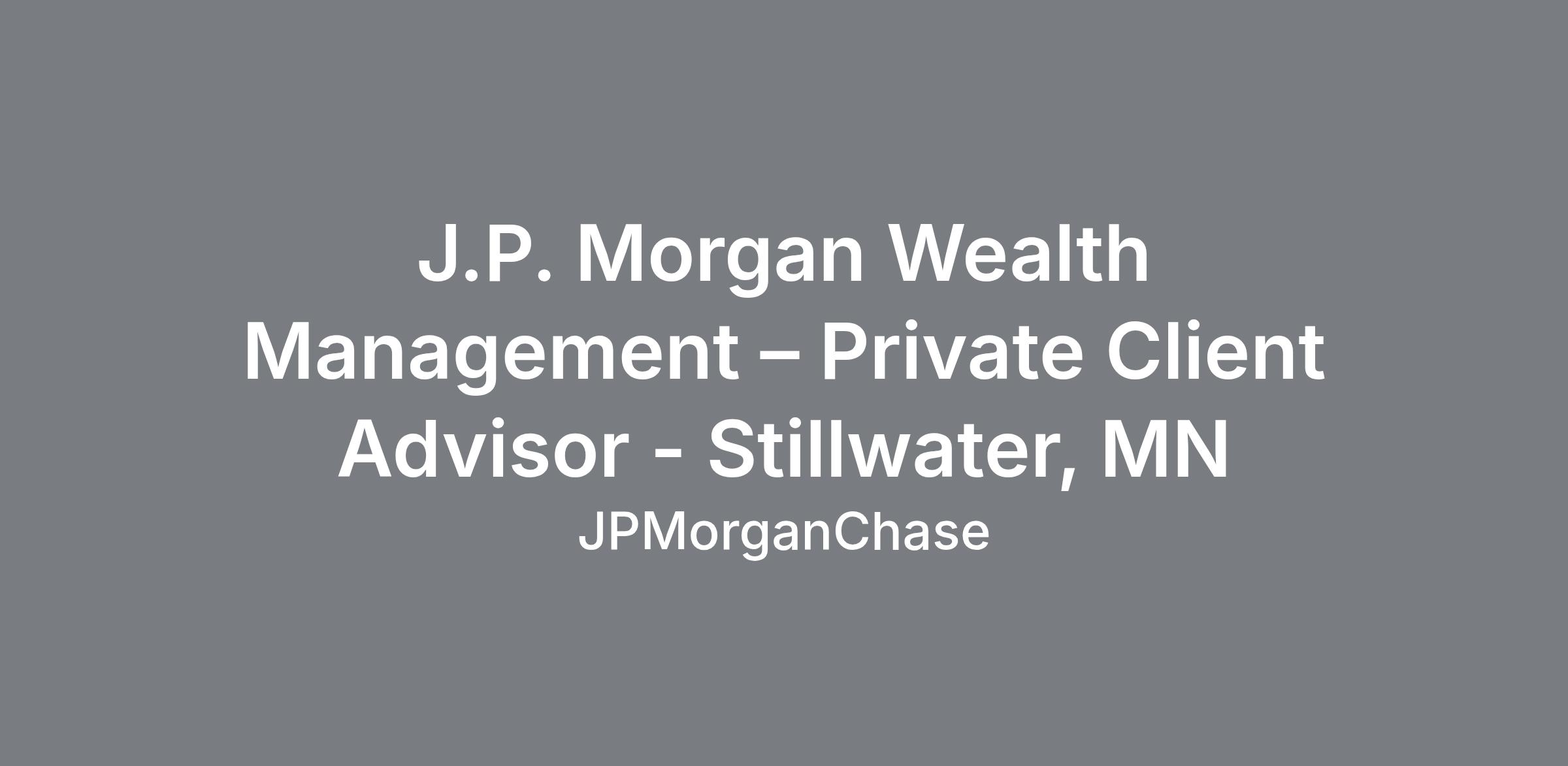 J.P. Morgan Wealth Management – Private Client Advisor - Stillwater, MN
