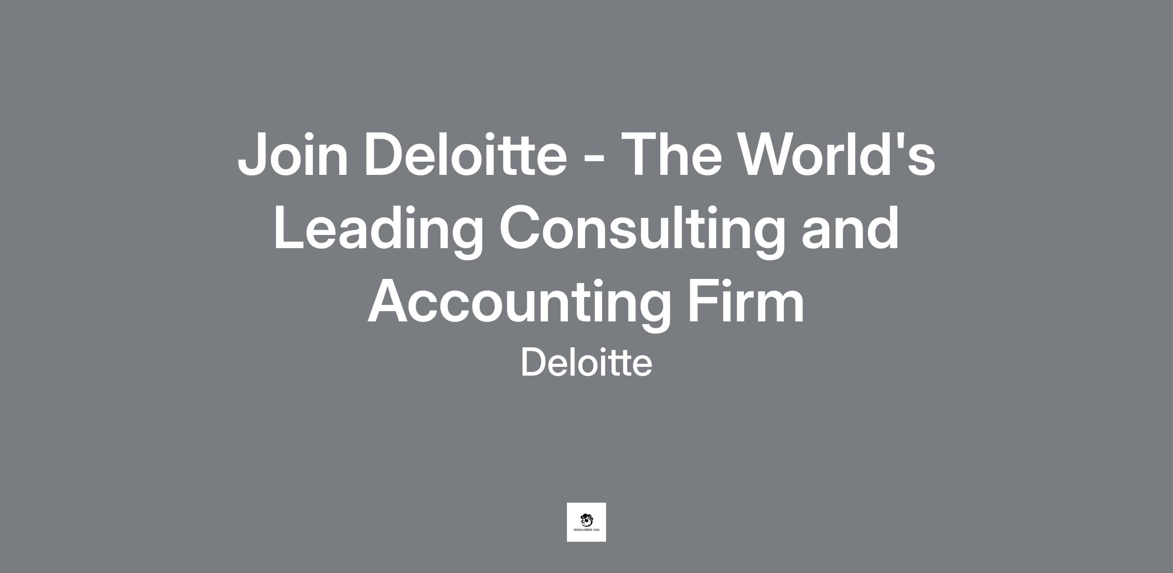 Join Deloitte - The World's Leading Consulting and Accounting Firm!
