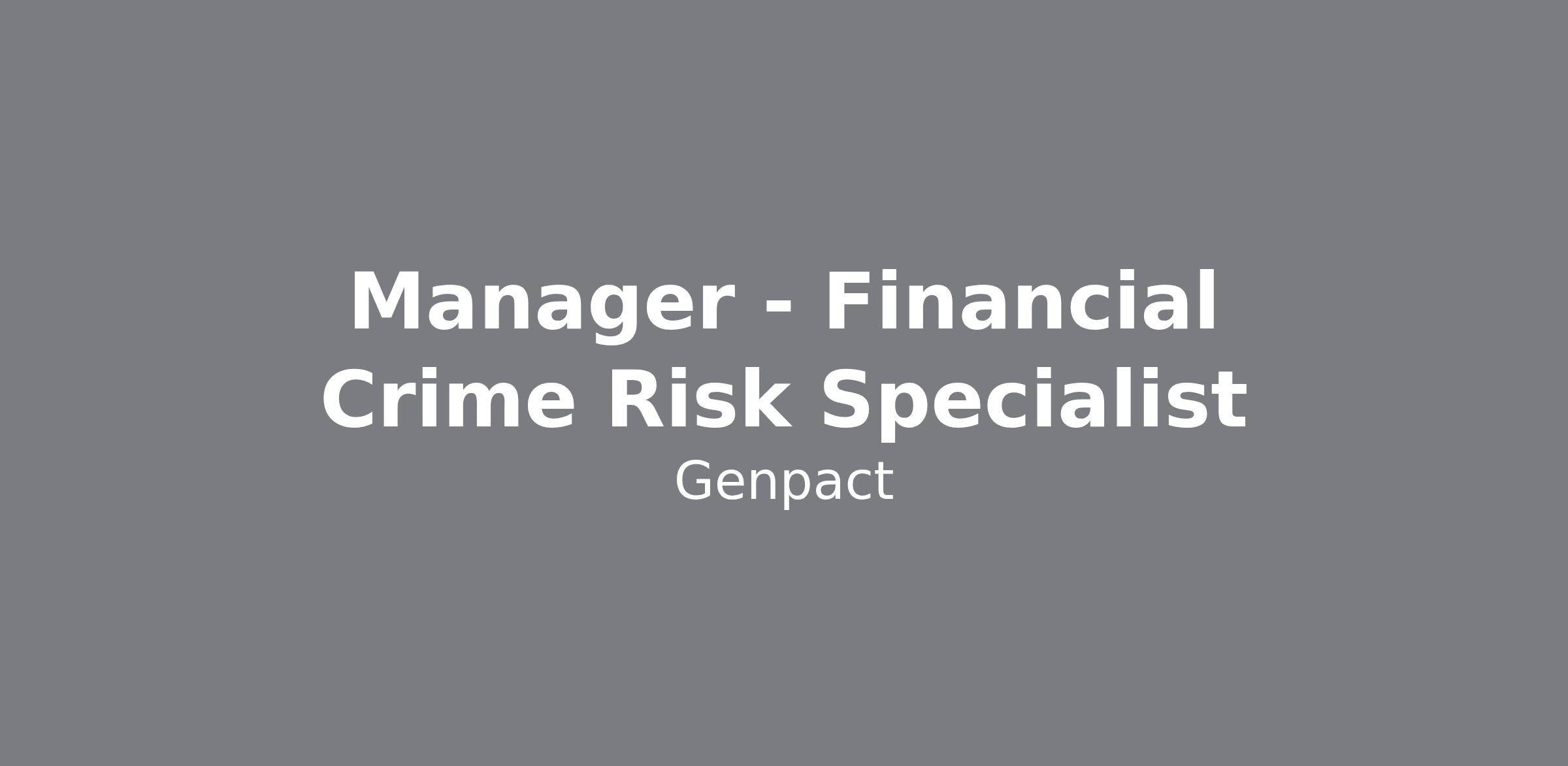 Inviting applications for the role of Manager, Financial Crime Risk Specialist!