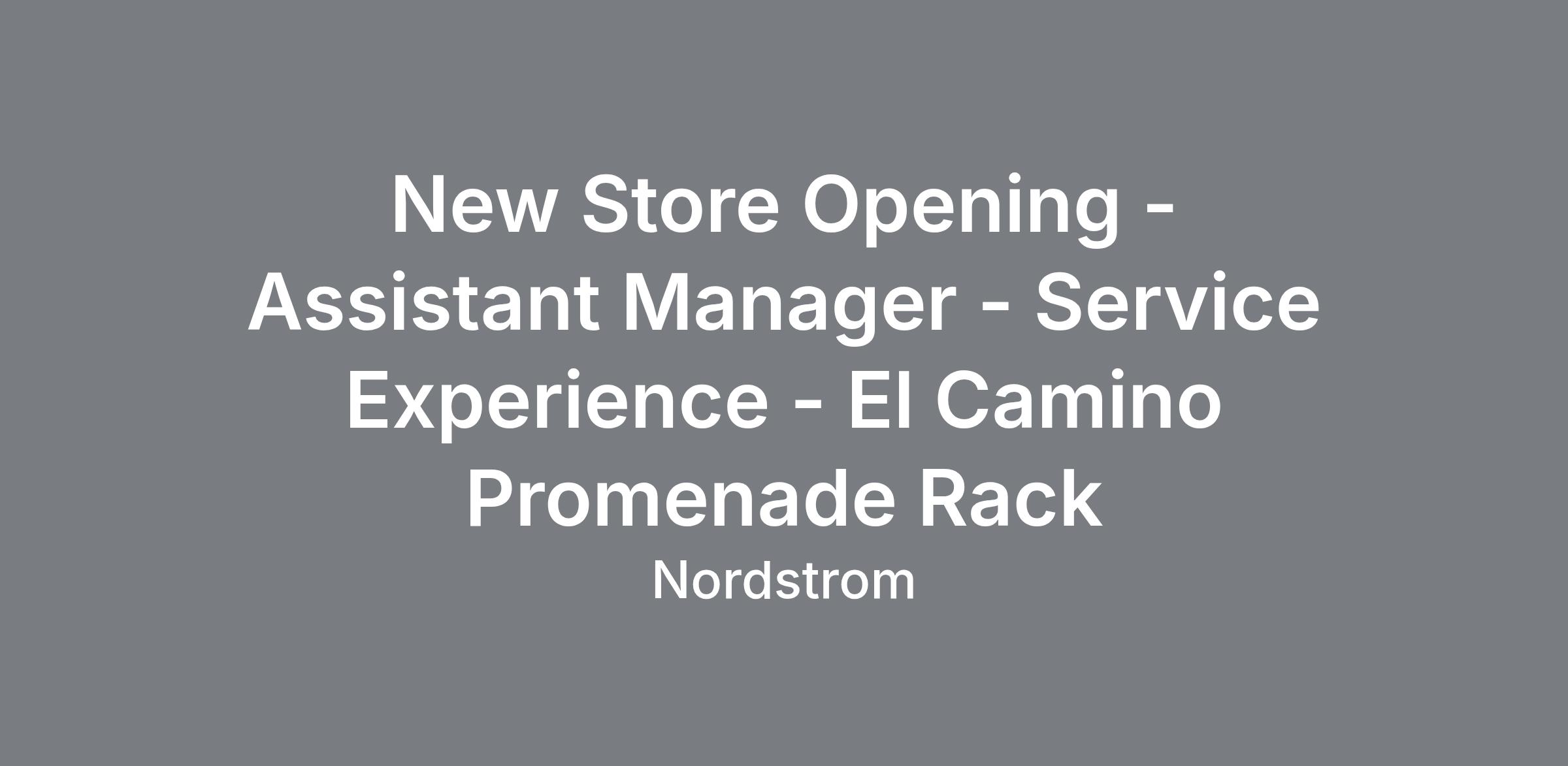 New Store Opening - Assistant Manager - Service Experience - El Camino Promenade Rack