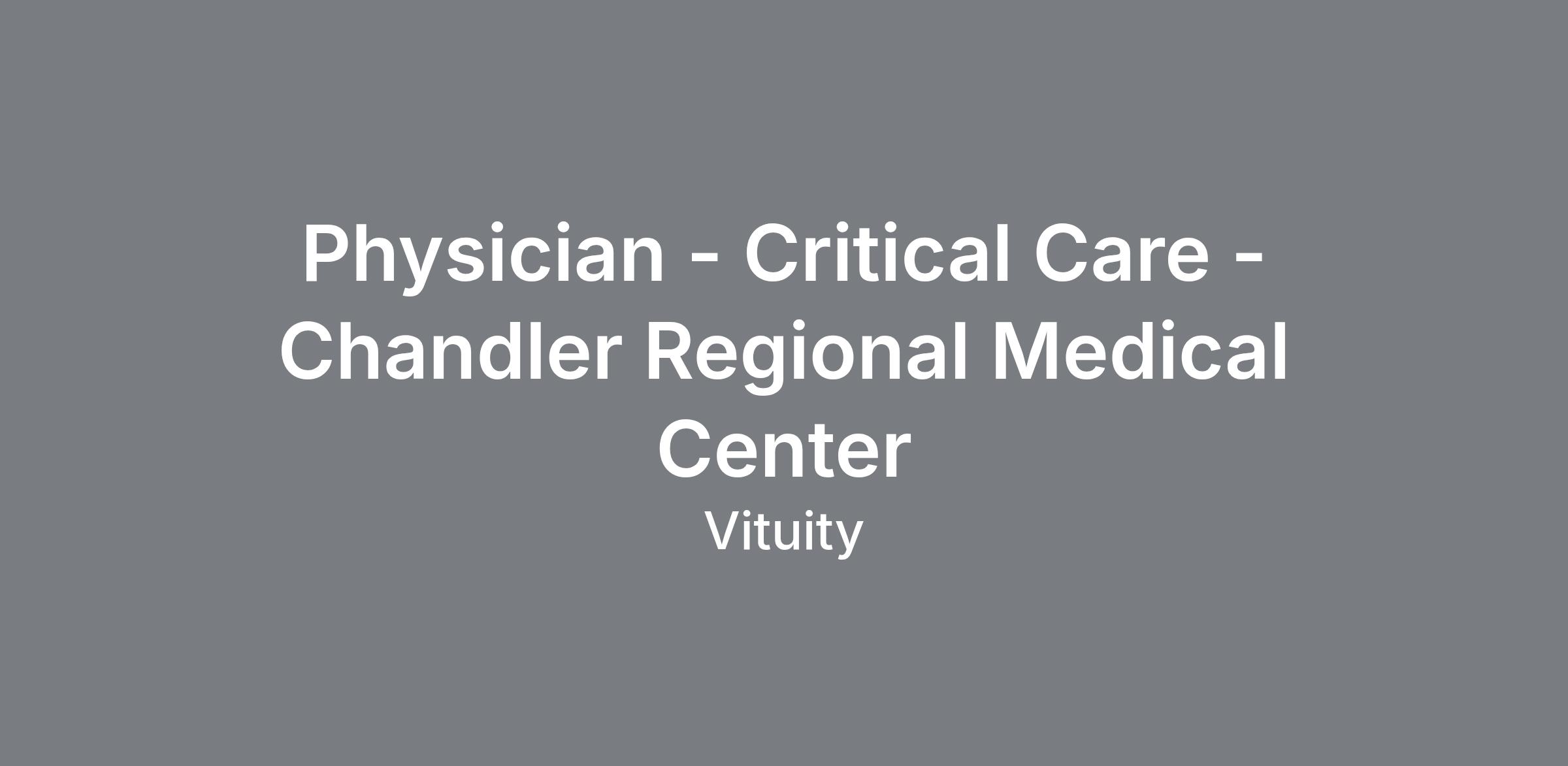 Physician - Critical Care - Chandler Regional Medical Center
