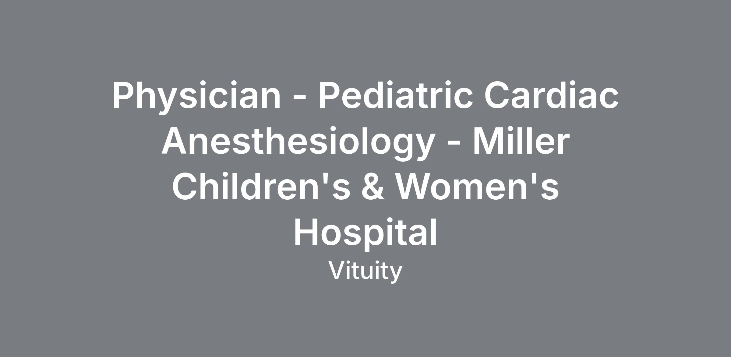 Physician - Pediatric Cardiac Anesthesiology - Miller Children's & Women's Hospital
