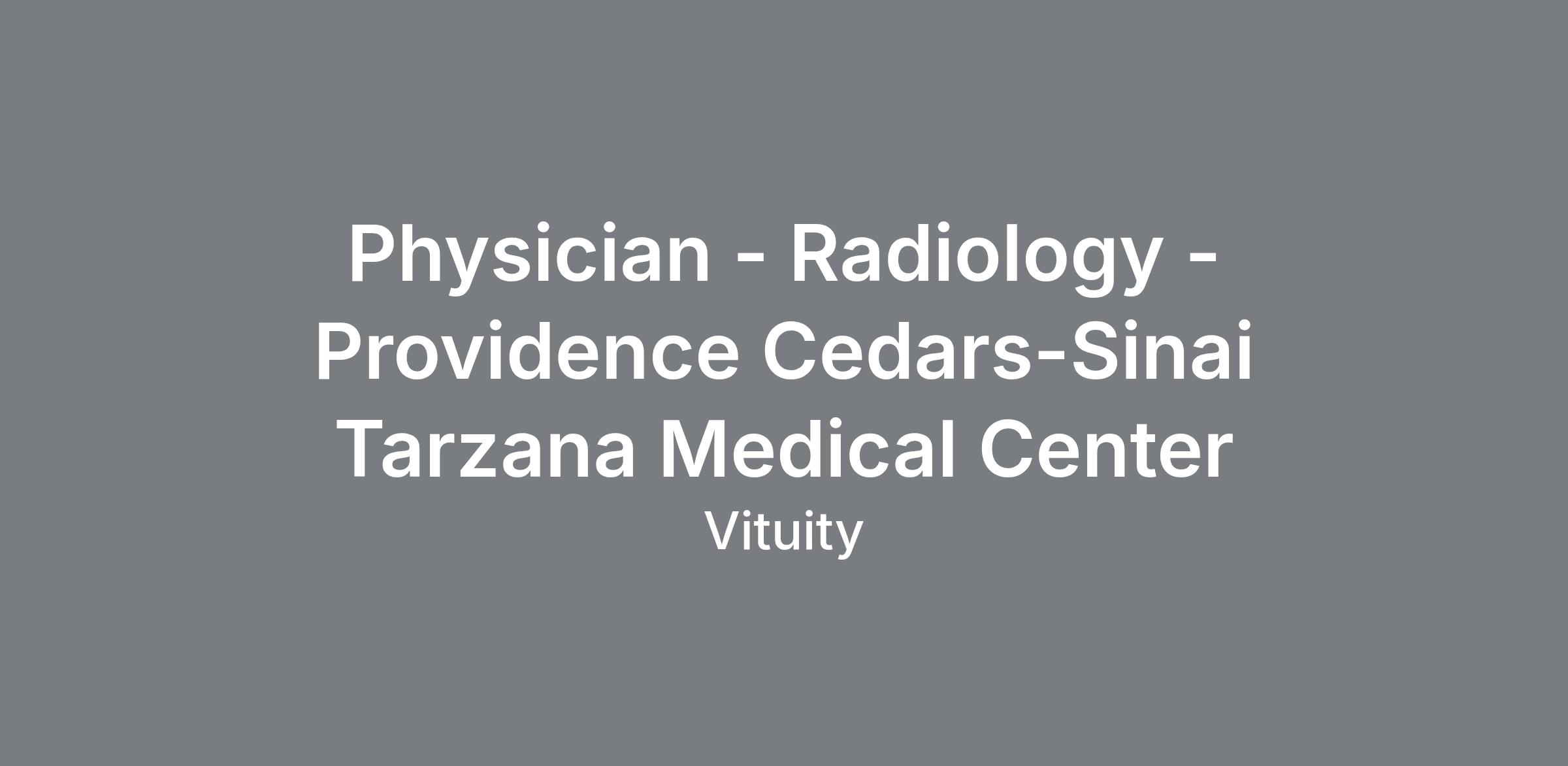 Physician - Radiology - Providence Cedars-Sinai Tarzana Medical Center