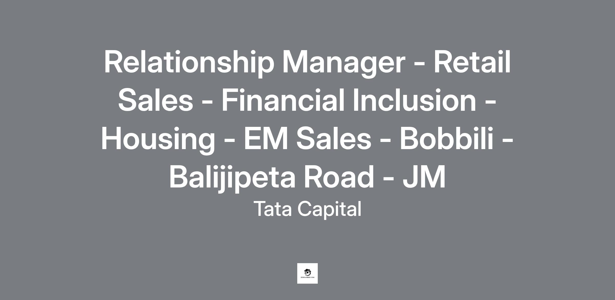 Relationship Manager - Retail Sales - Financial Inclusion - Housing - EM Sales - Bobbili - Balijipeta Road - JM