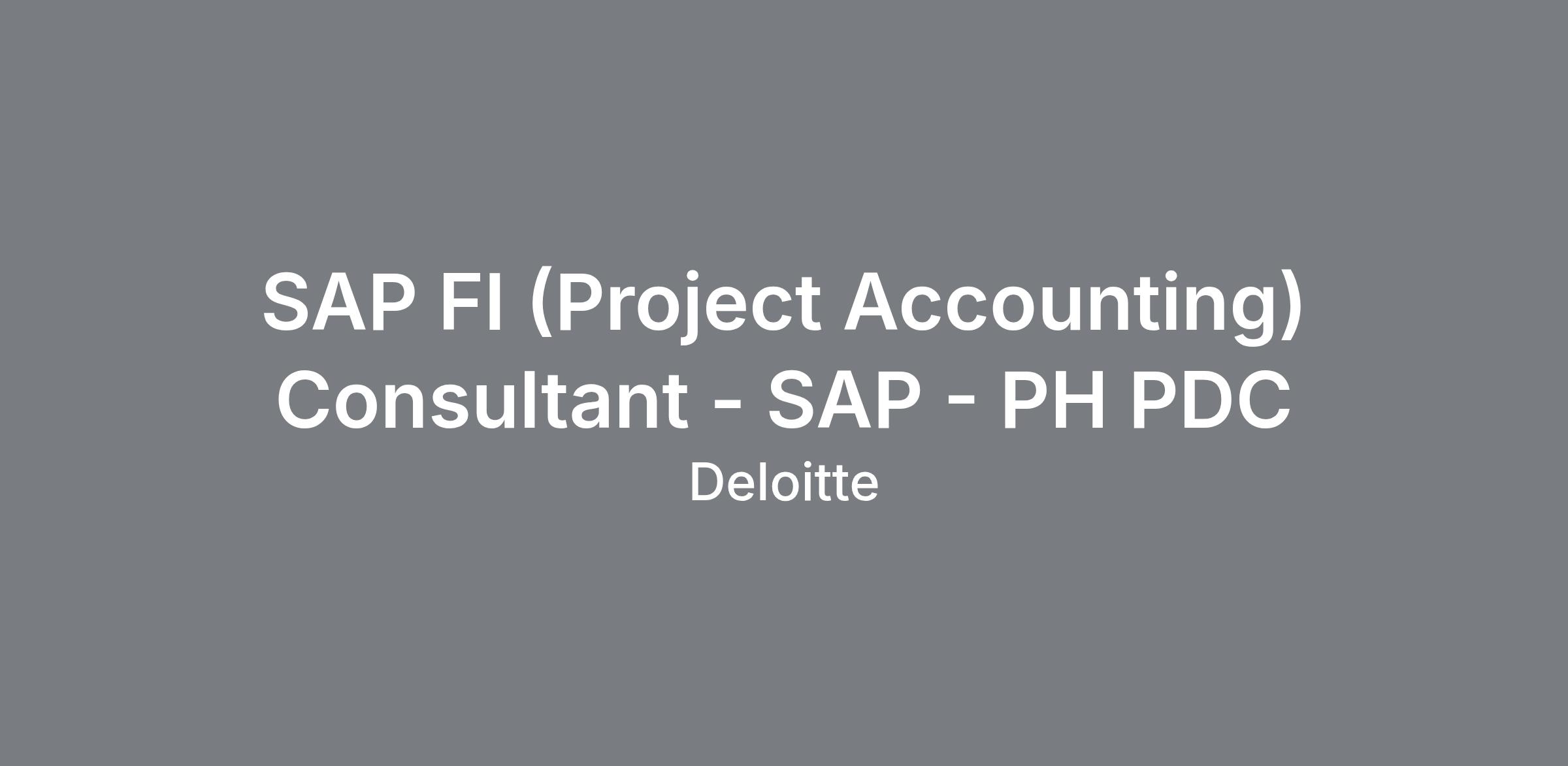 Title: SAP Finance (PA) Consultant based in Deloitte Consulting Philippines Delivery Center