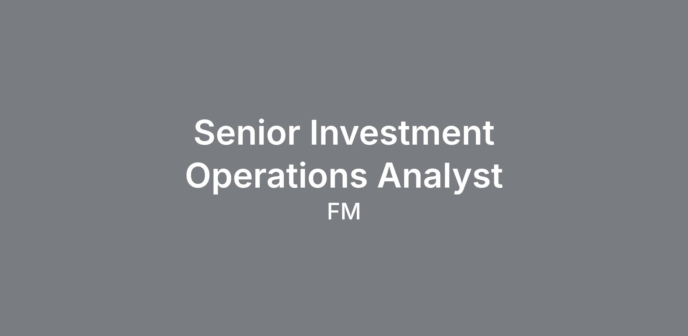Senior Investment Operations Analyst