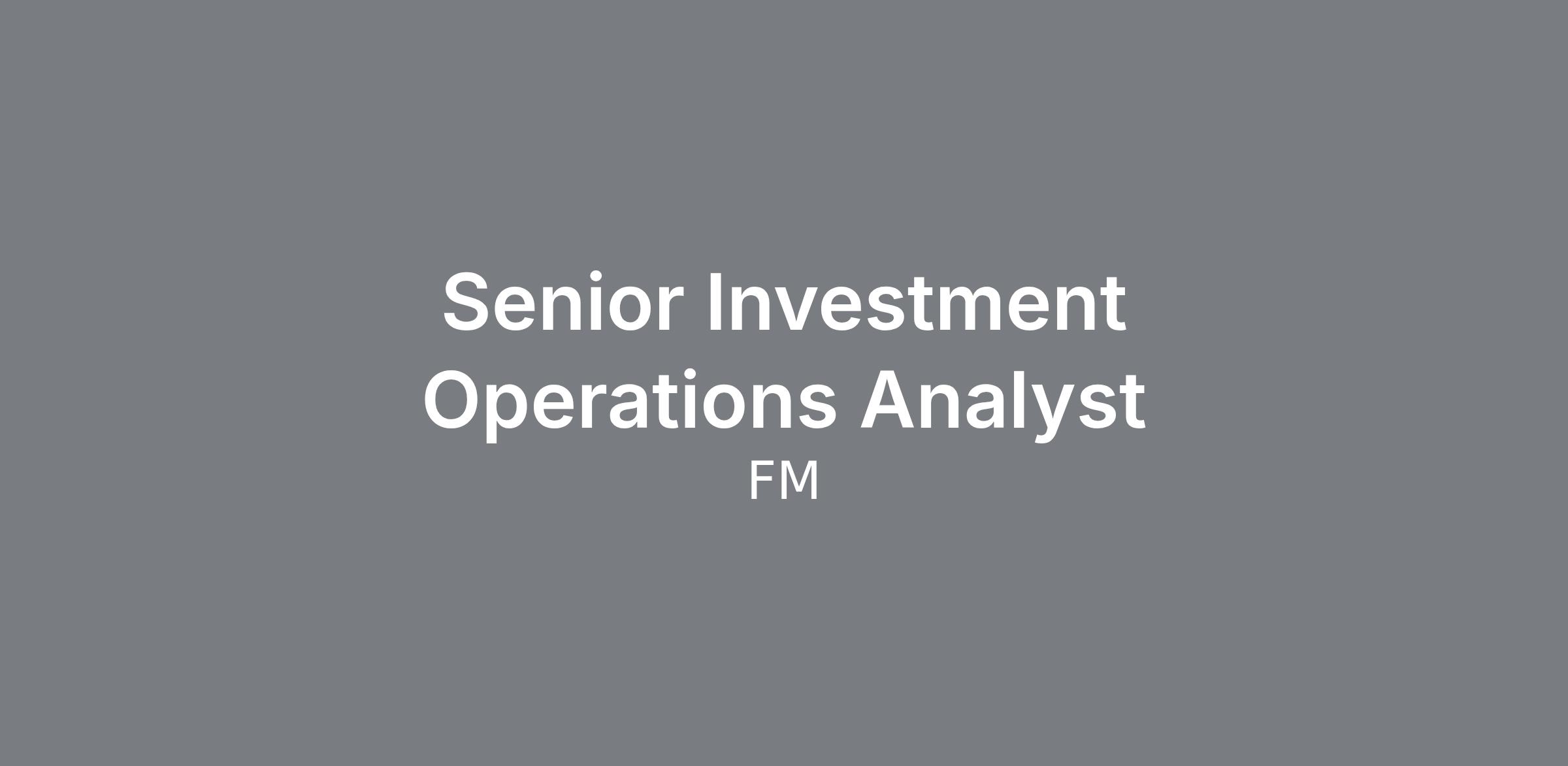 Senior Investment Operations Analyst