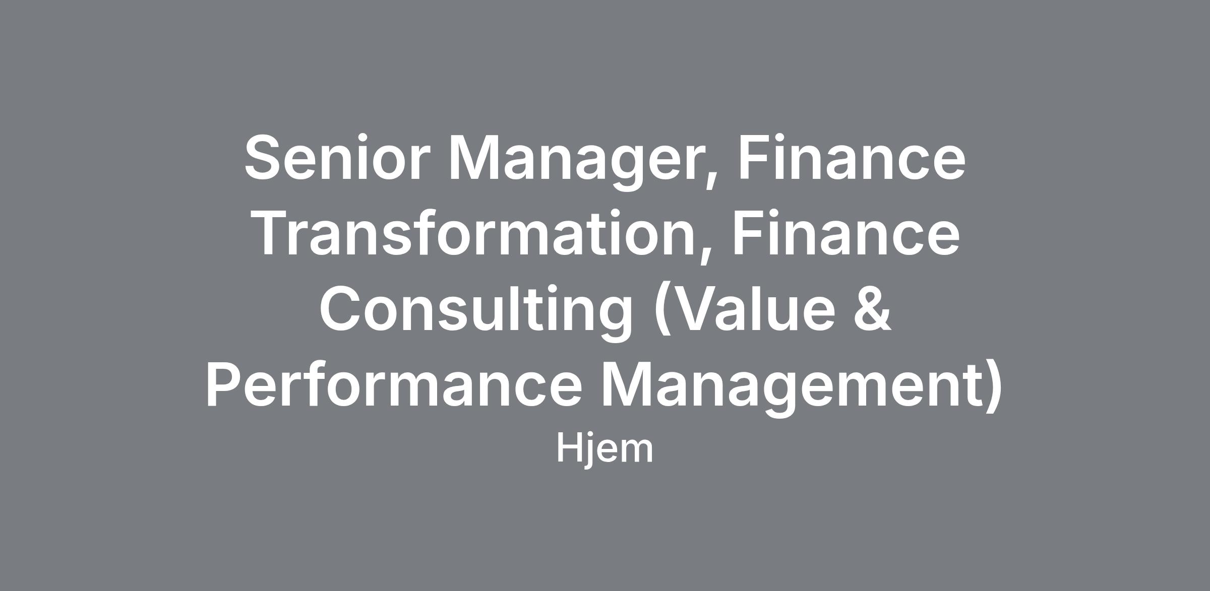 Senior Manager, Finance Transformation – Finance Consulting (Value & Performance Management)