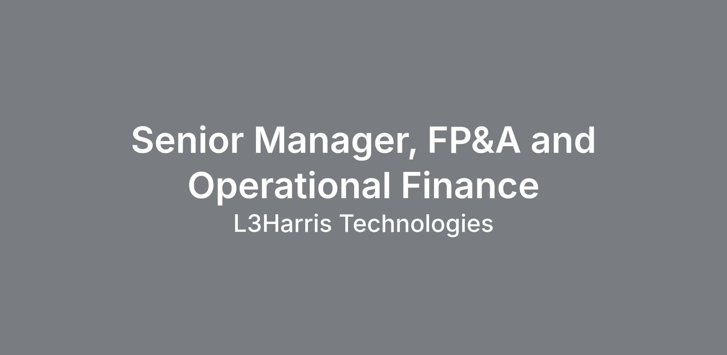 Senior Manager, FP&A and Operational Finance