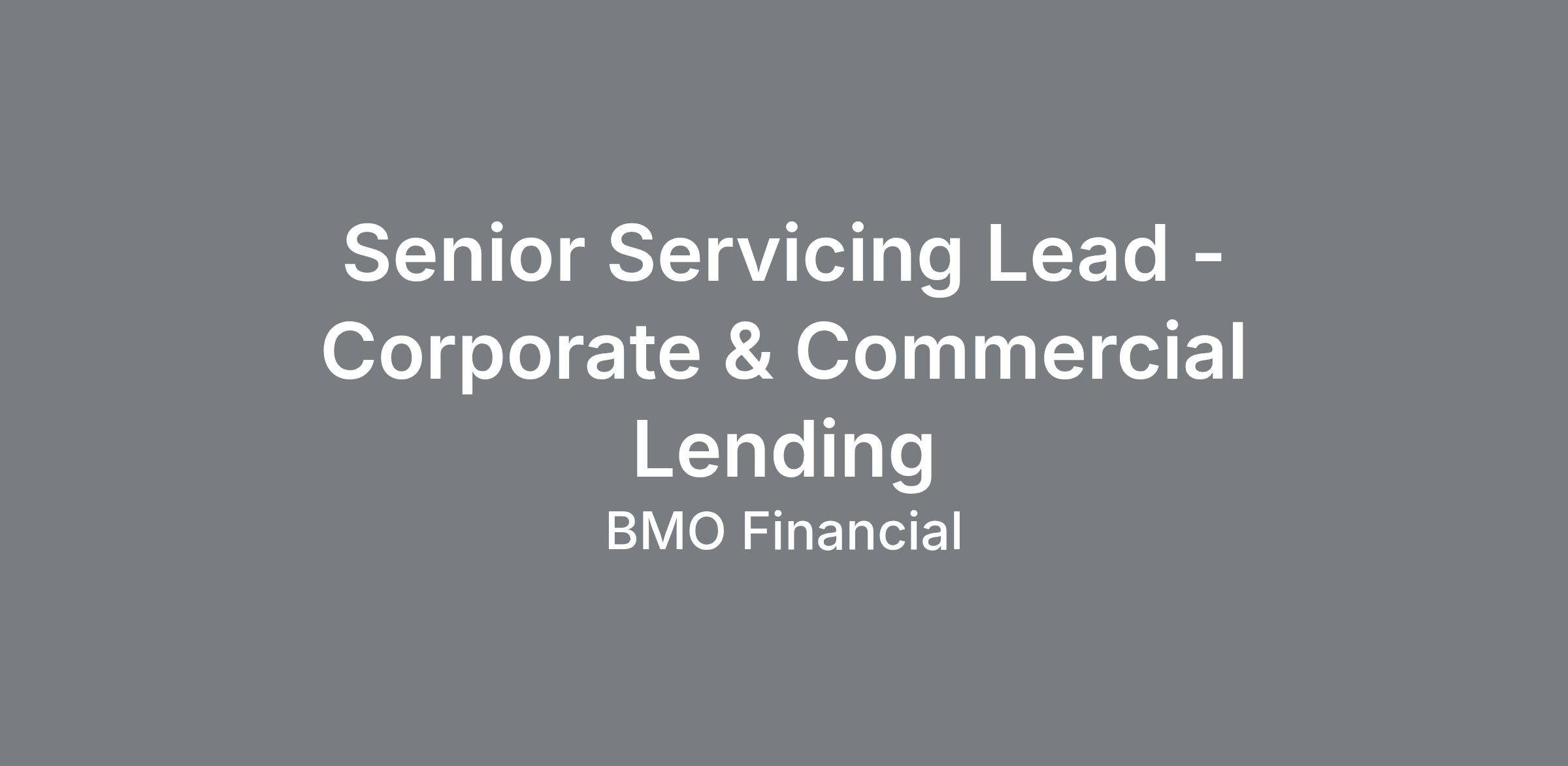 Application Deadline: 04/28/2026 Address: 320 S Canal Street Job Family Group: Customer Shared Services BMO is hiring a Senior Servicing Lead supporting Corporate & Commercial Lending Operations in Chicago, IL. Provides loan servicing and monitoring support for corporate and commercial lending portfolios in a professional and timely manner. Delivers agreed lending/financing services as specified in the credit agreement/approval and ensures all required policies, guidelines and standards are met. Addresses more complex escalated customer requests and transactions or escalates with recommendations. Provides advice and guidance to assigned business/group on implementation of solutions. Develops solutions and makes recommendations based on an understanding of the business strategy and stakeholder needs. Builds change management plans of varying scope and type; leads or participates in a variety of change management activities including readiness assessments, planning, stakeholder management, execution, evaluation and sustainment of initiatives. Participates in defining the communication plan designed to positively influence or change behaviour; develops tailored messaging; and identifies appropriate distribution channels. May act as Team Lead and assist manager in activities such as coordination and scheduling of work, workload management, resource forecasting, quality control, training, coaching team members and problem resolution. Processes more complex transactions and activities. Researches and resolves discrepancies and issues or escalates to manager, as required. Provides input into the planning and implementation of operational programs. Provides input to manager in relation to team performance discussions. Leads/participates in the design, implementation and management of core business/group processes. Identifies business needs, designs/develops tools and training programs; may include delivery of training to audiences. Acts as the day to day contact for vendors; supports the implementation, maintenance, and sustainment of vendor solutions. Collaborates to execute loan servicing and monitoring requests. Prepares customer notifications and billings, and processes services and transactions including (but not limited to) loan advances/payments, wire transfers, billing for principal/interest/fees, monitoring collateral positions, financial exceptions, etc. Executes and manages documentation to ensure that records are maintained in a proper manner. Analyzes data and information to provide insights and recommendations. Collaborates with internal and external stakeholders to deliver on business objectives. Supports change management of varying scope and type; tasks typically focused on execution and sustainment activities. Builds effective relationships with internal/external stakeholders. Focus is primarily on business/group within BMO; may have broader, enterprise-wide focus. Exercises judgment to identify, diagnose, and solve problems within given rules. Works independently on a range of complex tasks, which may include unique situations. Broader work or accountabilities may be assigned as needed. Take measured risks while protecting the bank by applying our Risk Management Framework in the execution of your role, in line with our Risk Culture and within our approved Risk Appetite, making sound and risk informed decisions that align to business strategy, protect assets, and adhere to applicable policy documents (Frameworks, Policies, Standards, Procedures and Supporting documents), laws and regulations. Qualifications: Typically between 4 - 6 years of relevant experience and post-secondary degree in related field of study or an equivalent combination of education and experience. Knowledge and understanding of business unit’s products and services, processes and controls – In-depth Knowledge of standard desktop applications (i.e. Excel, etc.) and department systems and applications – In-depth. Understanding of business unit’s risk and regulatory requirements – In-depth. Ability to multi-task in a fast paced environment. Technical proficiency gained through education and/or business experience. Verbal & written communication skills - In-depth. Collaboration & team skills - In-depth. Analytical and problem solving skills - In-depth. Influence skills - In-depth. Data driven decision making - In-depth. Salary : $57,500.00 - $106,500.00 Pay Type: Salaried The above represents BMO Financial Group’s pay range and type. Salaries will vary based on factors such as location, skills, experience, education, and qualifications for the role, and may include a commission structure. Salaries for part-time roles will be pro-rated based on number of hours regularly worked. For commission roles, the salary listed above represents BMO Financial Group’s expected target for the first year in this position. BMO Financial Group’s total compensation package will vary based on the pay type of the position and may include performance-based incentives, discretionary bonuses, as well as other perks and rewards. BMO also offers health insurance, tuition reimbursement, accident and life insurance, and retirement savings plans. To view more details of our benefits, please visit: https://jobs.bmo.com/global/en/Total-Rewards About Us At BMO we are driven by a shared Purpose: Boldly Grow the Good in business and life. It calls on us to create lasting, positive change for our customers, our communities and our people. By working together, innovating and pushing boundaries, we transform lives and businesses, and power economic growth around the world. As a member of the BMO team you are valued, respected and heard, and you have more ways to grow and make an impact. We strive to help you make an impact from day one – for yourself and our customers. We’ll support you with the tools and resources you need to reach new milestones, as you help our customers reach theirs. From in-depth training and coaching, to