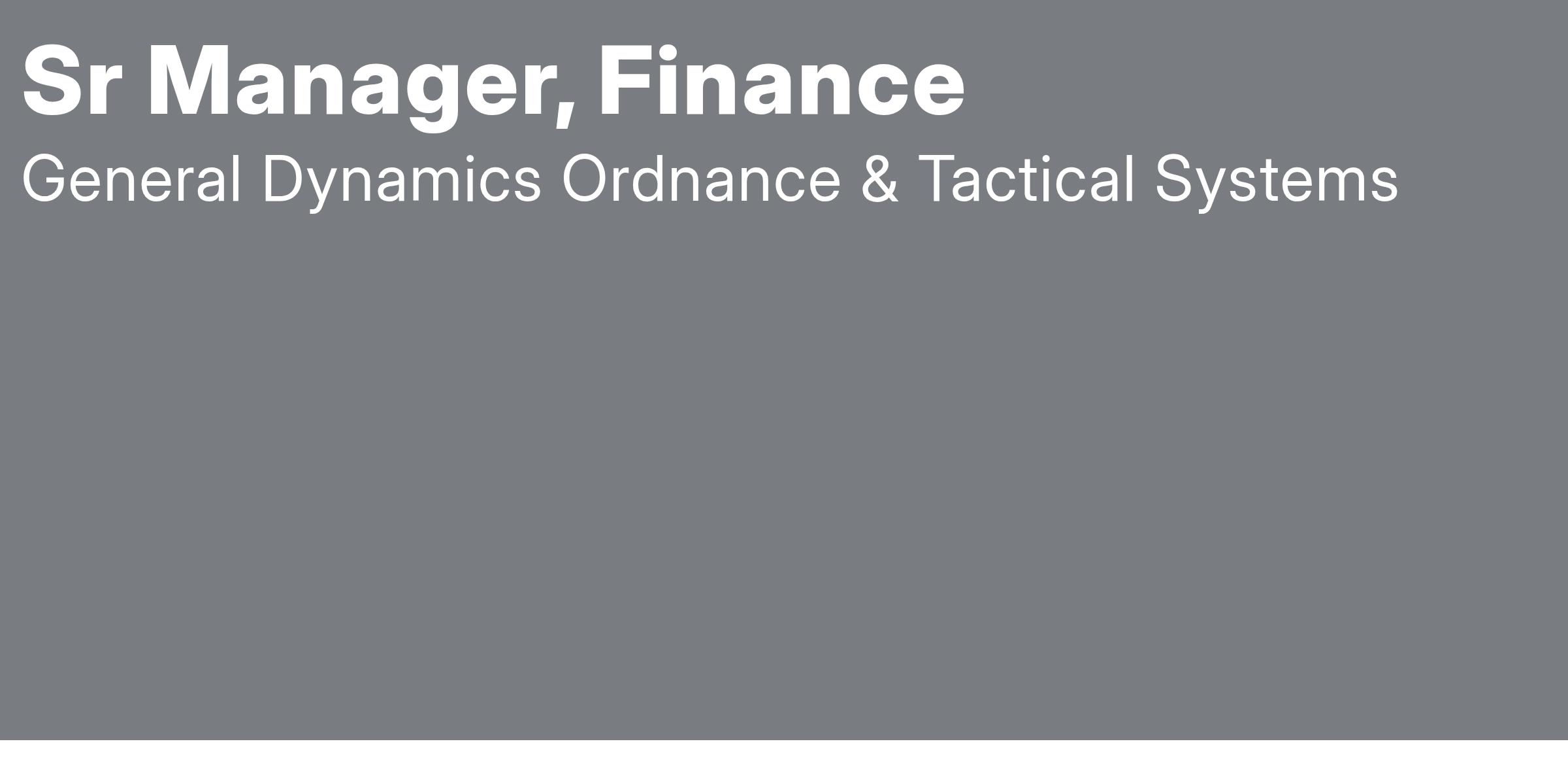 General Dynamics Ordnance and Tactical Systems (GD-OTS), a premier provider of ordnance weapons and tactical systems to the U.S. Department of Defense and allied nations, has an opening for an onsite Sr. Manager, Finance to join our Northeastern Pennsylvania (NEPA) - Scranton / Wilkes-Barre, PA team. We take pride in supporting the mission of the warfighter by delivering the best, to the best. Our products can be found with every U.S. military branch and with allies around the world. We are looking for a motivated and creative leader to help shape and support our mission.
