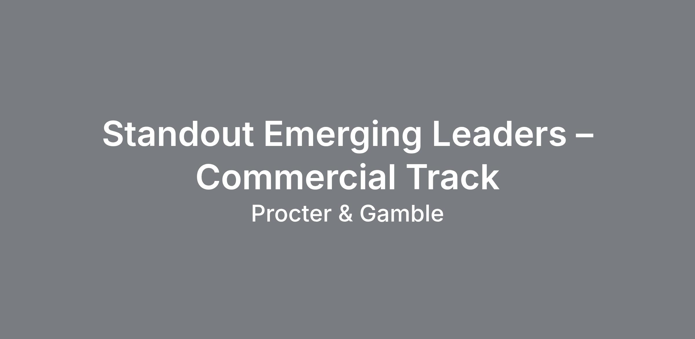 Job Location CINCINNATI GENERAL OFFICES Job Description A signature pathway to a P&G internship! Standout Emerging Leaders is a highly selective leadership experience designed to identify and develop the next generation of commercial leaders at Procter & Gamble. This is not a traditional recruiting event — it’s a three-day immersive experience from August 4th – 7th, 2026 that brings together top early-career talent from across the country to experience P&G’s culture, innovation, and career opportunities firsthand. Why Standout? At P&G, commercial success is driven by a deep understanding of brands, consumers, customers, and data. Standout Emerging Leaders gives you the opportunity to: See how commercial strategies come to life - from brand building and customer partnerships to data-driven decision making Learn directly from senior leaders and cross-functional partners, including Brand, Sales, Finance and Human Resources Understand how insights, strategy, and execution connect to drive real business results at a global company Explore long-term career pathways across P&G’s commercial organizations Be evaluated beyond your résumé, through how you think critically, learn quickly, and lead with impact The Experience Selected candidates will be invited to an all-expenses-paid, three-day event at P&G’s global headquarters in Cincinnati, Ohio. During the experience, you will: Work through real-world commercial business challenges, analyze insights, develop recommendations, and present solutions Engage with leaders across Brand, Sales, Finance and Human Resources, gaining perspective on how commercial decisions are made Build an understanding of how P&G connects consumers, customers, and data to drive innovation and business growth Complete a final interview at the conclusion of the event The Outcome High-Potential candidates will receive a summer internship offer for the following year (2027) within the commercial function they are assigned at the conclusion of the program. How the Selection Process Works Apply to Standout Emerging Leaders – Commercial Track Rank your functional preferences (Human Resources, Finance & Accounting, Brand, Sales) Complete and pass the assessments and initial interview Receive an invitation to attend the three-day Standout experience Participate in a final interview during the event Internship offers extended following the program The program is highly competitive, and only a limited number of candidates will be invited to participate. Commercial Functions You May Be Matched With Human Resources (HR) : Drive talent development, organizational culture, and employee engagement initiatives. Finance & Accounting (F&A) : Manage financial planning, reporting, and analysis to support business decisions. Brand : Develop brand strategies aligned with consumer needs and market trends, utilizing insights, design, and communications to drive market success. Sales : Develop and implement strategies to drive sales growth and customer relationships. Job Qualifications Who We’re Looking For A Sophomore (or within three years of graduation) pursuing a bachelor’s degree in Business, Finance, Marketing, Psychology, Economics, Communications, or related degree. A strong collaborator with a growth mindset and demonstrated leadership potential. Motivated by innovation, learning, and driving real business impact. Eager to learn how brands, customers, and data come together to drive business results. Ability to analyze data and insights to solve real-world business challenges and make recommendations. Learn More Watch the Standout Emerging Leaders sizzle video Application process, assessment tips, and interview guidance Disability accommodations information C heck out our Standout Emerging Leaders Web Page Standout Emerging Leaders is more than an event — it’s a launchpad. If you’re ready to see yourself at P&G, we’re ready to meet you. Apply today! We are committed to providing equal opportunities in employment. We value diversity and do not discriminate on the basis of race, religion, color, national origin, gender, sexual orientation, age, marital status, veteran status, or disability status. Immigration Sponsorship is not available for this role. For more information regarding who is eligible for hire at P&G along with other work authorization FAQ’s, please click HERE . Procter & Gamble participates in e-verify as required by law. Qualified individuals will not be disadvantaged based on being unemployed. We will ensure that individuals with disabilities are provided reasonable accommodation to participate in the job application or interview process, to perform essential job functions, and to receive other benefits and privileges of employment. Please contact us to request accommodation. Job Schedule Full time Job Number R000144676 Job Segmentation Internships Starting Pay / Salary Range $29.00 - $50.00 / hour