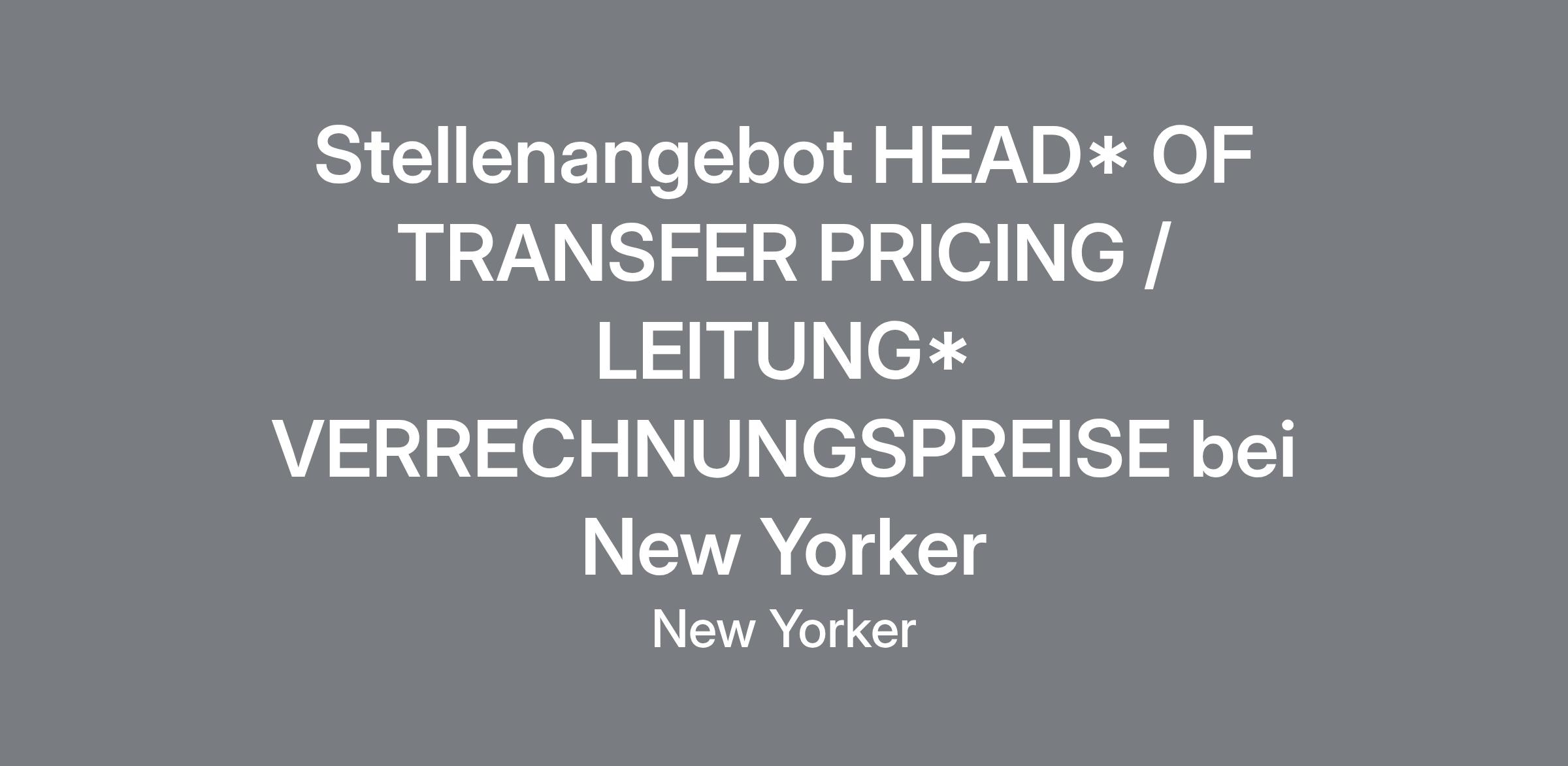 Strategische Leitung des Bereichs Transfer Pricing für den gesamten Konzern