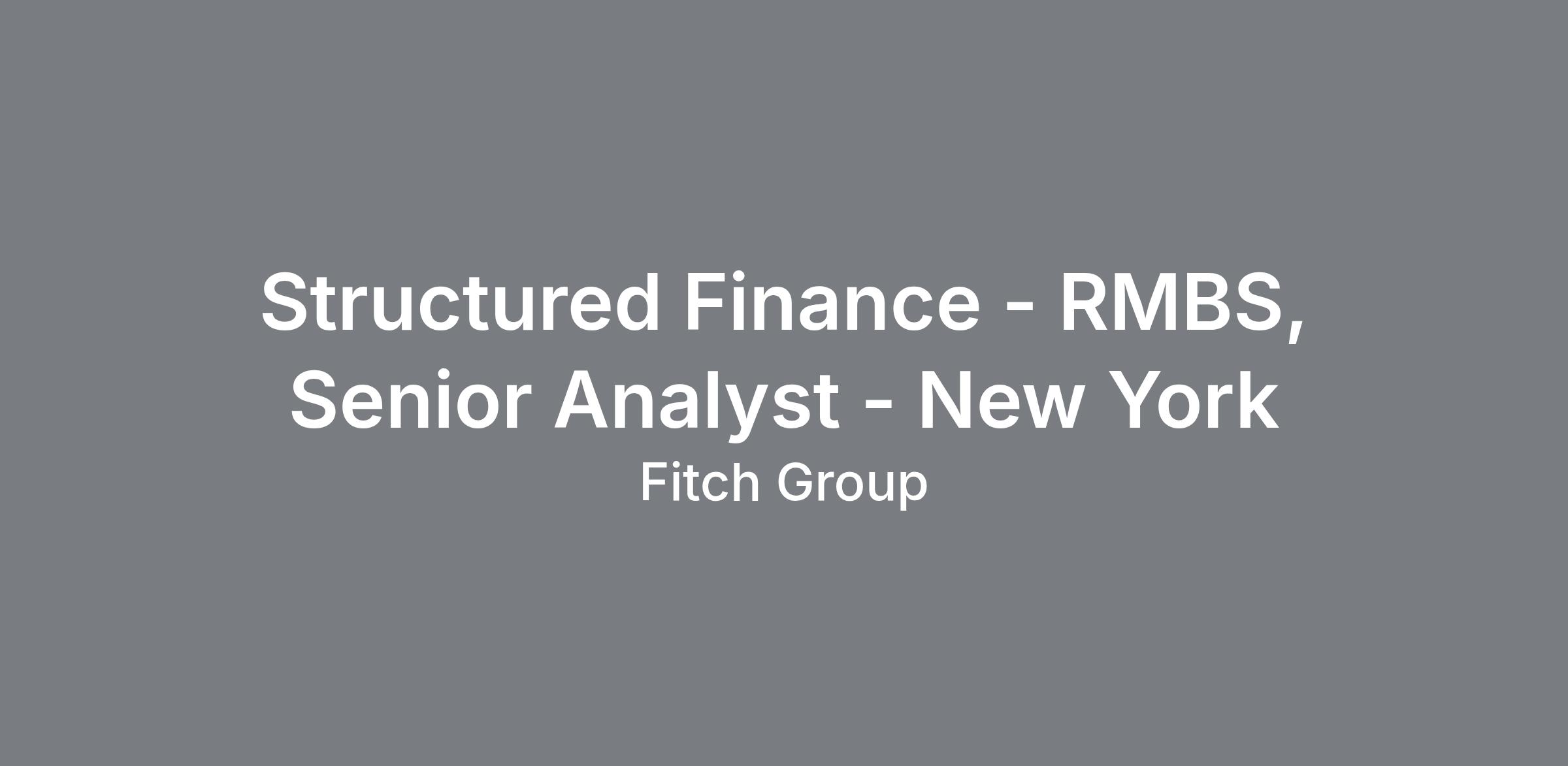 Fitch Ratings is seeking a Senior Analyst to join the Residential Mortgage-Backed Securities Group (RMBS) in our New York office.