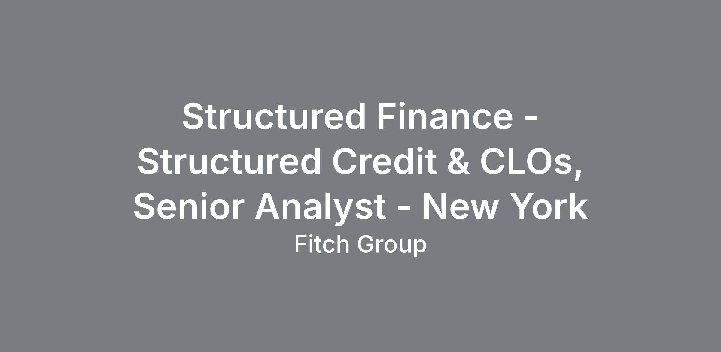 Fitch Ratings is seeking a Senior Analyst to join its Structured Credit & CLOs group in our New York office.