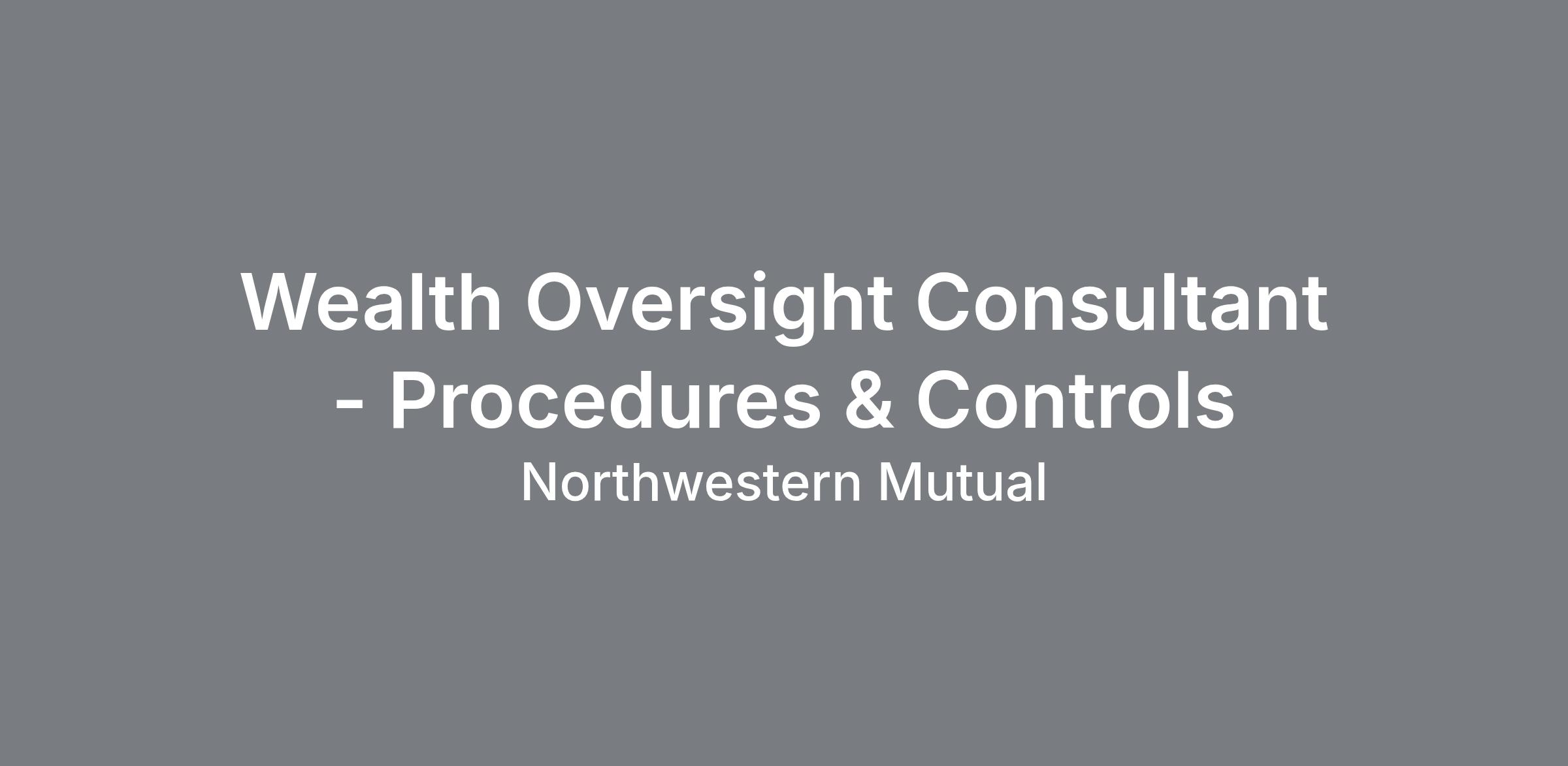Summary The Oversight Consultant – Procedures and Controls is responsible for assisting with operational controls and oversight to manage risk associated with the offering of advisory and brokerage products and services. This role supports Wealth policy, procedure and control efforts, audit finding management, record retention efforts, and other projects as needed. Primary Duties & Responsibilities With limited direction and supervision, assists with ownership of small to moderate (with some large) operational controls and oversights for Wealth investment products, programs and services in order to mitigate risk. This includes design and implementation of new or existing policies, procedures and controls. Interprets customer (internal and external) needs can explain and translate product or program features and functions into operational controls to mitigate risks. With moderate autonomy, translates wealth risk and controls strategy into product design details and requirements, and may be expected to perform ongoing oversight or control processes on behalf of the first line of business. Provides expertise and support to internal teams and advisors for risk management and oversight and controls programs Utilizes knowledge of best practices for regulatory compliance and operational controls in order to ensure adherence to business conduct policies/procedures for Field and client practices or ensures the escalation of thereof for concerns Manages the appropriateness and timeliness of proposed resolutions for Wealth internal audit findings. Ensures the department meets the Enterprise’s books and records requirements and that they are accurately documented within policies and procedures or ensures the escalation of non-compliance or concerns to the supervisor. Assists with metrics reporting, regulatory inquiries and examination requests. Qualifications Bachelor's degree or equivalent in business, finance, economics or related field Equivalent combination of work experience at Northwestern Mutual will be considered. 5 plus years of experience in financial services with an emphasis in operations, investment products, regulatory support, or compliance and supervision. FINRA Series 24, Series 7 and SIE are required. Demonstrated ability to drive change within cross-departmental initiatives Strong attention to detail and ability to develop risk and controls expertise Ability to leverage industry resources Strong organizational and follow-through skills, with ability to work within deadlines, prioritize work and multitask. Proven leadership skills including relationship building, negotiating, delegation, planning and organization Superior verbal and written communication skills Critical thinking and analytical skills, with the ability to research and resolve problems and issues consistent with regulatory requirements. This position has been classified as a Registered Representative under NMIS guidelines and requires fingerprinting.Series 24 - FINRA, Series 7 - FINRA, SIE - FINRA Compensation Range: Pay Range - Start: $89,360.00 Pay Range - End: $134,040.00 Geographic Specific Pay Structure: Structure 110: Structure 115: We believe in fairness and transparency. It’s why we share the salary range for most of our roles. However, final salaries are based on a number of factors, including the skills and experience of the candidate; the current market; location of the candidate; and other factors uncovered in the hiring process. The standard pay structure is listed but if you’re living in California, New York City or other eligible location, geographic specific pay structures, compensation and benefits could be applicable, click here to learn more. Grow your career with a best-in-class company that puts our clients' interests at the center of all we do. Get started now! Northwestern Mutual is an equal opportunity employer who welcomes and encourages diversity in the workforce. We are committed to creating and maintaining an environment in which each employee can contribute creative ideas, seek challenges, assume leadership and continue to focus on meeting and exceeding business and personal objectives. Skills Risk Assessment & Identification (NM) - Intermediate, Cross Functional Partnering & Planning (NM) - Intermediate, Project Management (NM) - Advanced, Continuous Improvement (NM) - Intermediate, Policy & Procedure (NM) - Intermediate, Attention to Detail (NM) - Advanced, Decision Making (NM) - Intermediate FIND YOUR FUTURE We’re excited about the potential people bring to Northwestern Mutual. You can grow your career here while enjoying first-class perks, benefits, and our commitment to a culture of belonging. Flexible work schedules Concierge service Comprehensive benefits Employee resource groups PandoLogic. Category:Finance, Keywords:Risk Analyst, Location:Milwaukee, WI-53205